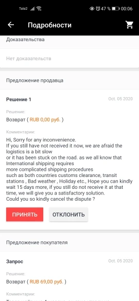 Я запросил 3 товара. Они прибыли 2, но третий не дает, и они не дают мне возмещение или возврат заказа. А также сам продавец подтверждал доставку, когда ее нет. Чувствую обманутым. Я требую более 2 месяцев (начинается до 90 дней)