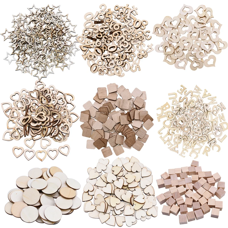 Деревянные кусочки из натурального дерева с буквами и конфетти, пустые сердца, звезды, деревянные кусочки для декора домашнего стола сделай сам, рисование ручной работы, скрапбукинг, ремесло