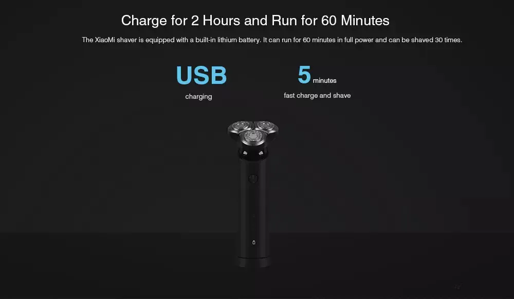 Бритва Xiaomi оснащена встроенной литиевой батареей.