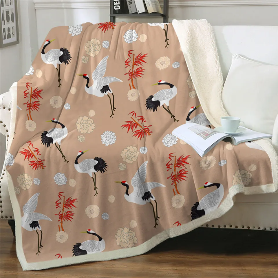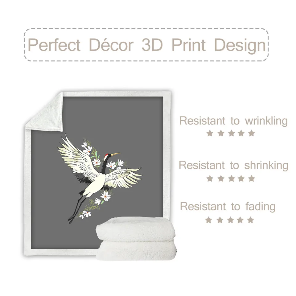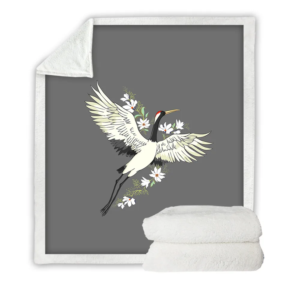 Плюшевое одеяло BeddingOutlet с краном, Белое мягкое одеяло с аистом, цветочное одеяло для кровати, элегантное индивидуальное одеяло с летающими птицами, Koce