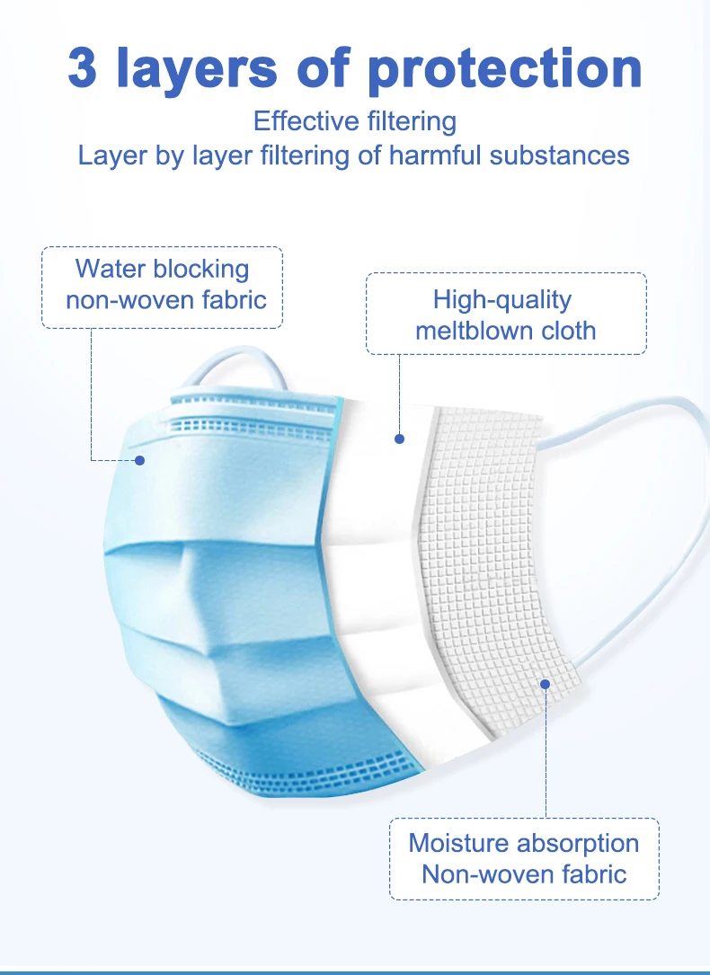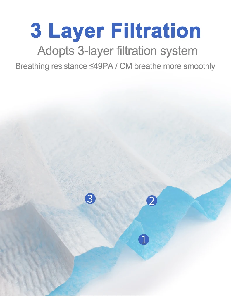 * Эффективная фильтрация: этот вид масок отличается высокой эффективностью фильтра, который способен фильтровать большинство мелких частиц. Это превосходный протектор для лица для ежедневного использования. * Премиум нетканый материал: изготовлен из высококачественного нетканого материала, одноразовые маски влагостойкие, приятные для кожи, удобные и дышащие. * 3 слоя дизайн: 3 слоя фильтровальная ткань материал обеспечивает высокую эффективность защиты от капель, смога, пыльцы, автомобильный отходящий газ, защита от пыли, пыльцы, задымление, вытирания слюней младенцев и т. д. * Удобная петля для ушей: мягкая петля для ушей мягкая и эластичная. Это не принесет дискомфорта при ношении, удерживая уши. * Широкое применение: маски используется для пищевой, фармацевтической, электронной, текстильной промышленности и идеально подходит для деревообработки, уборки дома и общего обслуживания. * Беззаботная гарантия: любая проблема, пожалуйста, свяжитесь с нашим магазином без колебаний. Честь служить вам!