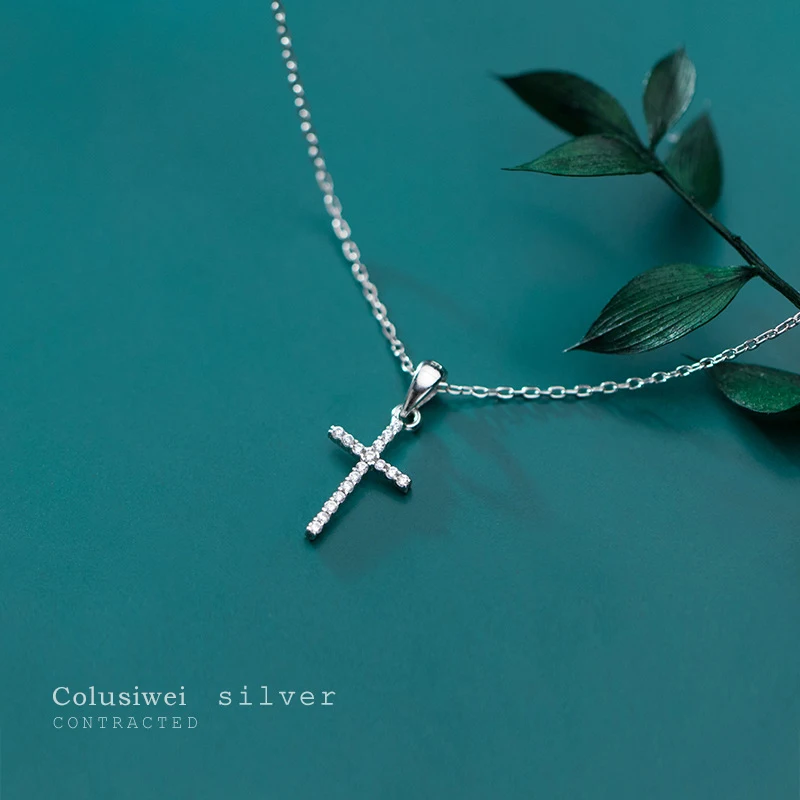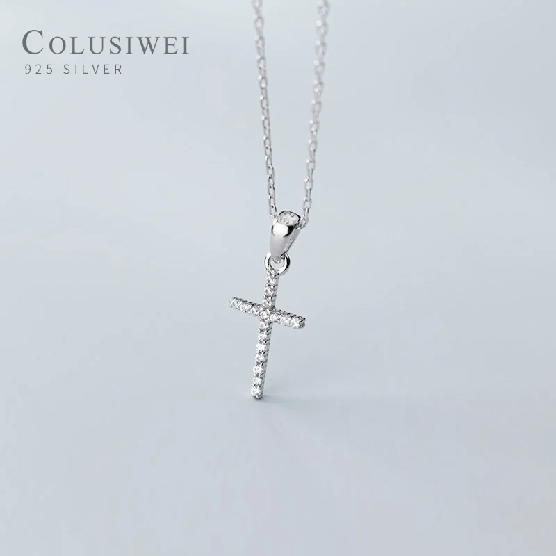 Colusiwei 925 стерлингового серебра роскошный колье с подвеской в виде креста для женщин сверкающий чистый CZ обручальные кольца ювелирные изделия, ювелирные изделия и принтом в виде героев мультиков