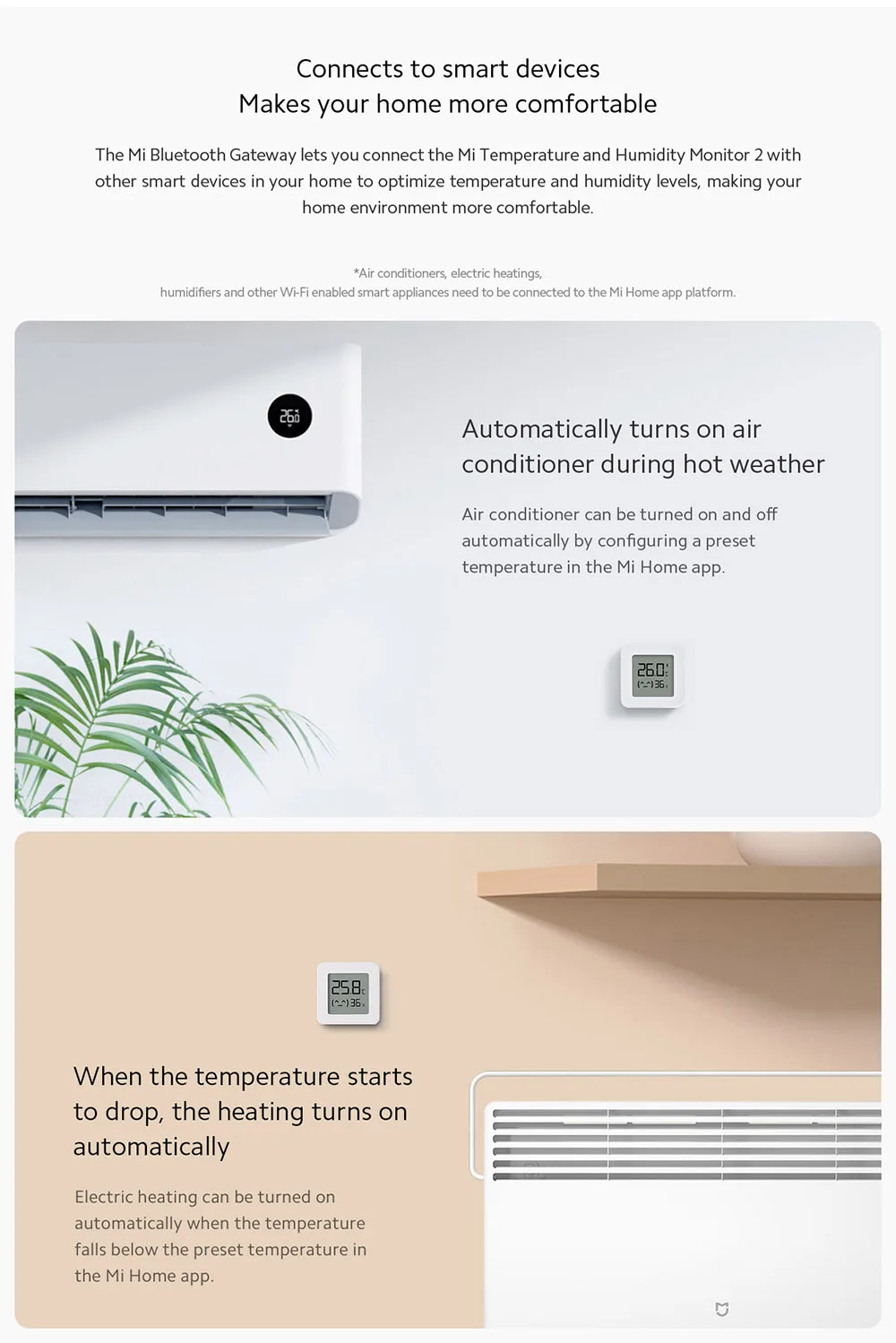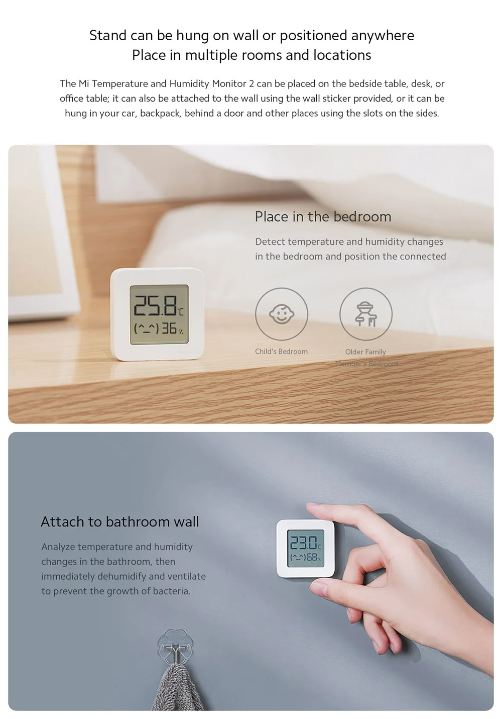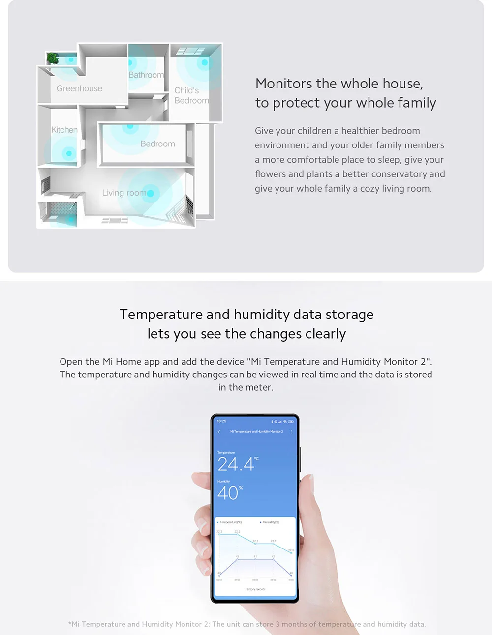 Потрясающие датчики! Размер небольшой, в комплекте есть наклейки для крепления. Моментально подключились к Mi home. Можно установить обычный режим, можно специальный детский (там выставлены в программе требования к температуре и влажности). На детском режиме смайлик на датчике будет меняться на грустный, если параметры вышли на нормы. Очень быстрая доставка! спасибо !