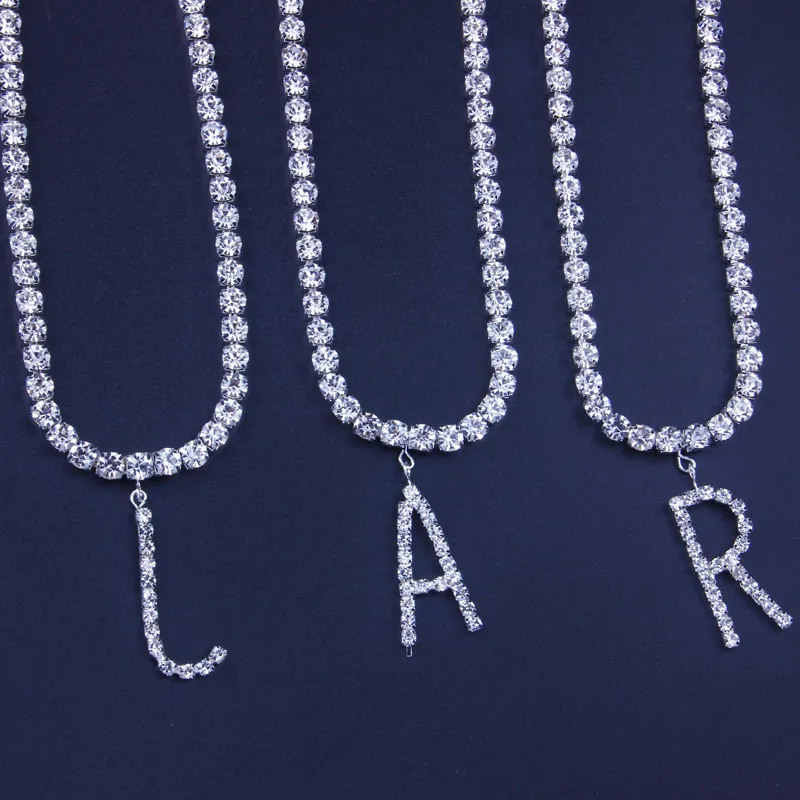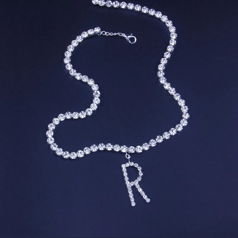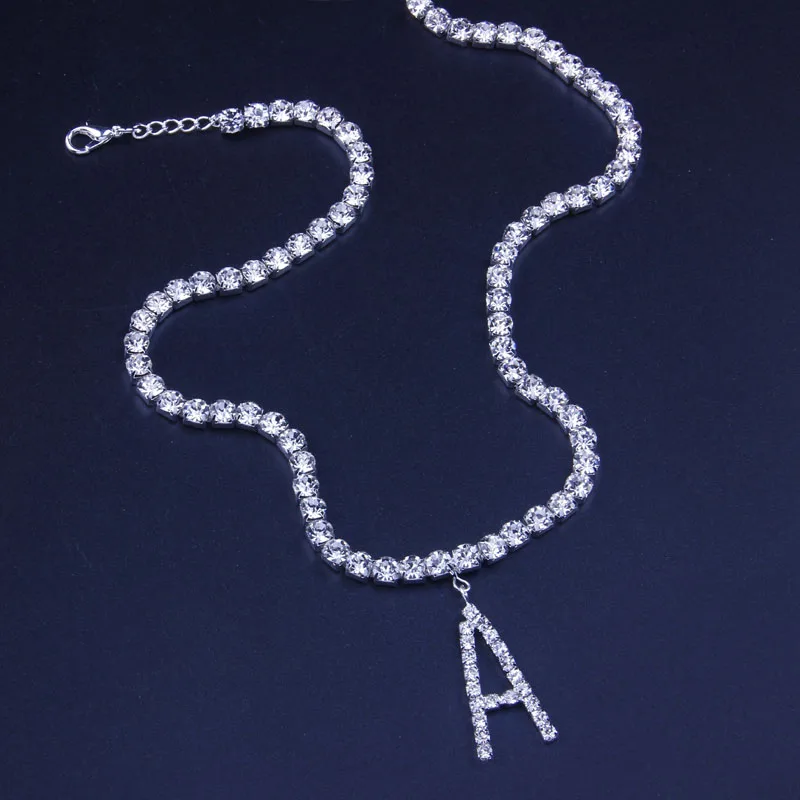 Цепочка-ожерелье с буквами, стразы и кристаллами, 26 дюймов, воротник с ожерельем с подвесками