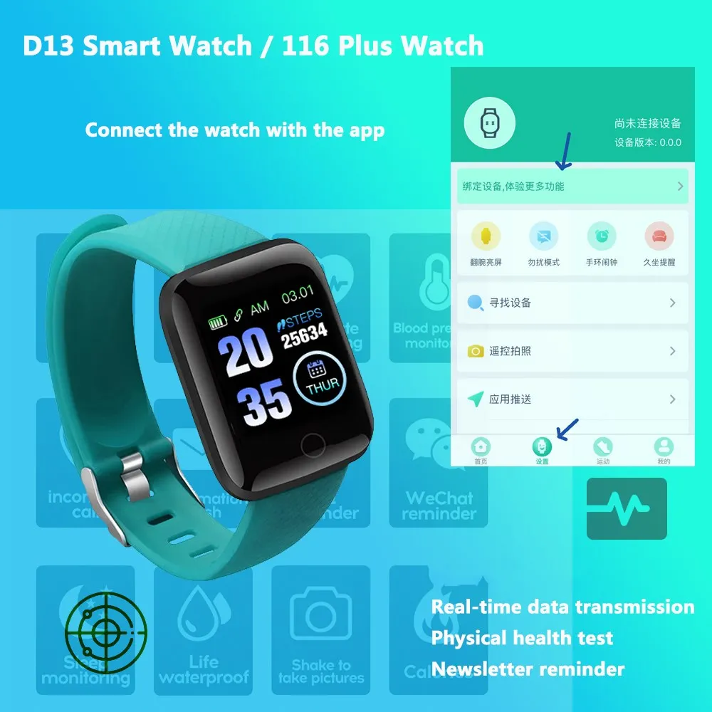 Умные часы D13 116 Plus, водонепроницаемые спортивные часы, фитнес-браслет для IOS и Android