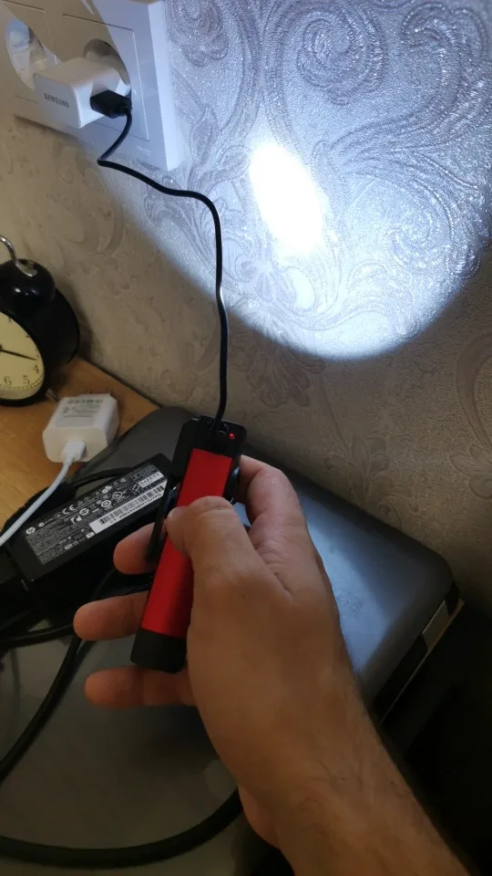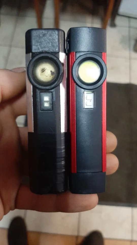 сравнивал с норбергом1901: магниты очень слабые, боковой вообще не держит. резиновая заглушка для гнезда зарядки неплотно закрывается. боковой фонарь светит чуть ярче, но свет пульсирует( на фото видно полосы). у нордберга свет рассеянный, что более удобно и комфортнее для глаз. уф светит рамкой, но эффективный. nordberg качество намного лучше, корпус прорезиненный, светит комфорнее, но и стоит дороже. вообщем, фонарик так себе.