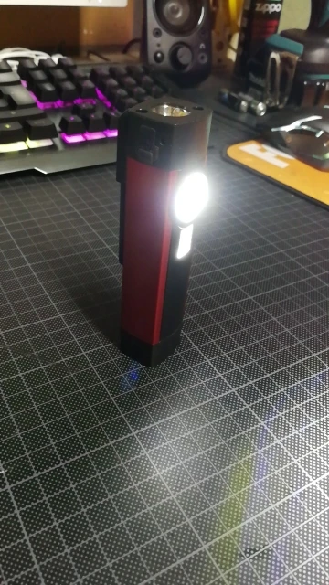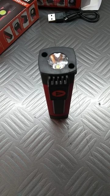 Очень яркий фонарик. Имеет 4 режима: торцевой яркий светодиод, основной сверхяркий cob, этот же cob но в менее ярком режиме и ультрафиолетовый светодиод. Так же имеются два магнита: торцевой и боковой на ручке-прищепке. Доволен фонариком на 146%. Однозначно одобряю к приобретению. В России этот же фонарик продаётся под брендом nordberg за 2000₽