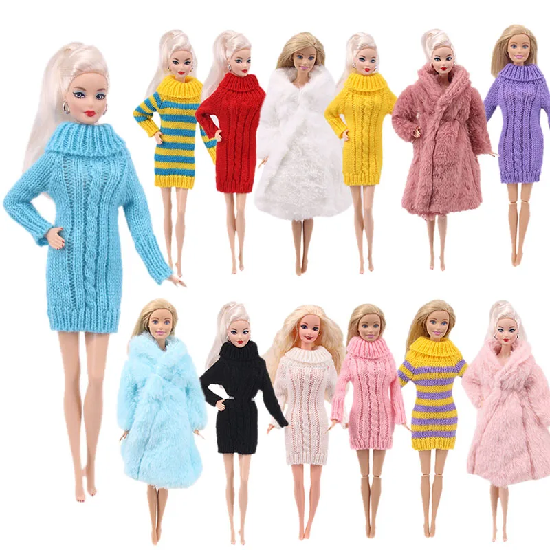 Кукла, похожие на Барби, мини вязаный свитер, пижамы, ночные рубашки, меховое пальто для русского творчества, день рождения, девочка, Детская кукла, игрушка, подарки