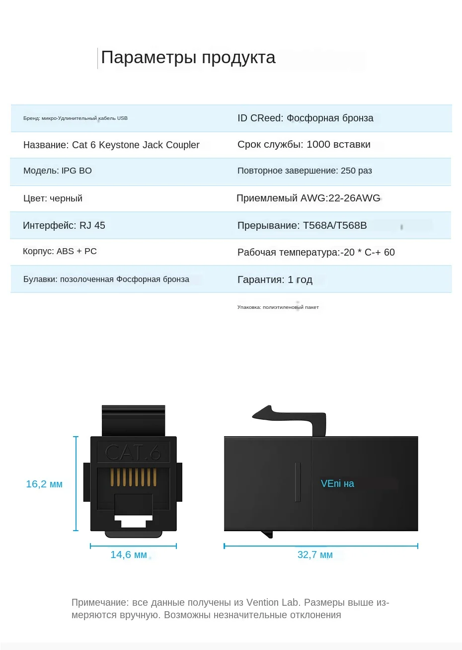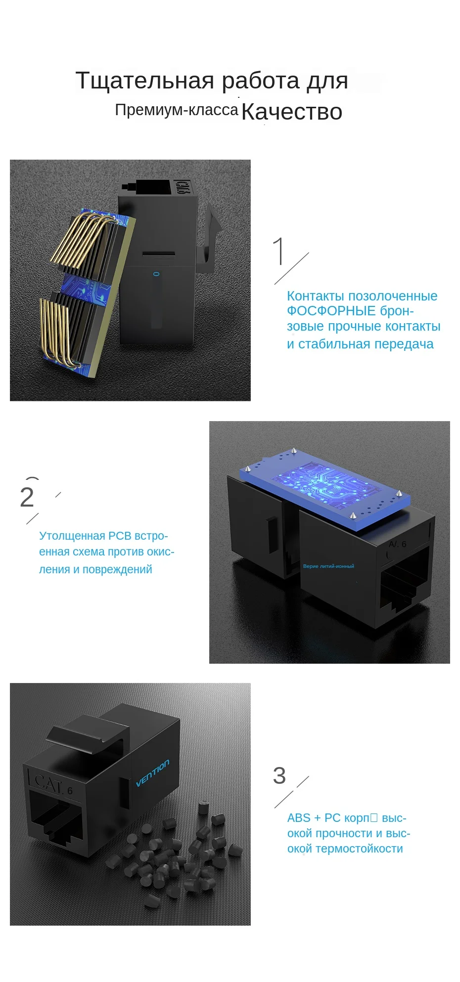 Коннектор Vention RJ45, удлинитель кабеля Ethernet Cat6 Cat5e, адаптер удлинитель Мама-мама для кабеля Ethernet, соединитель RJ45