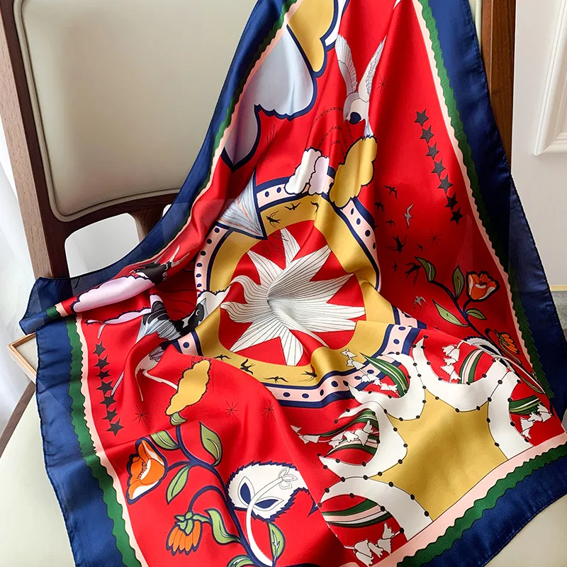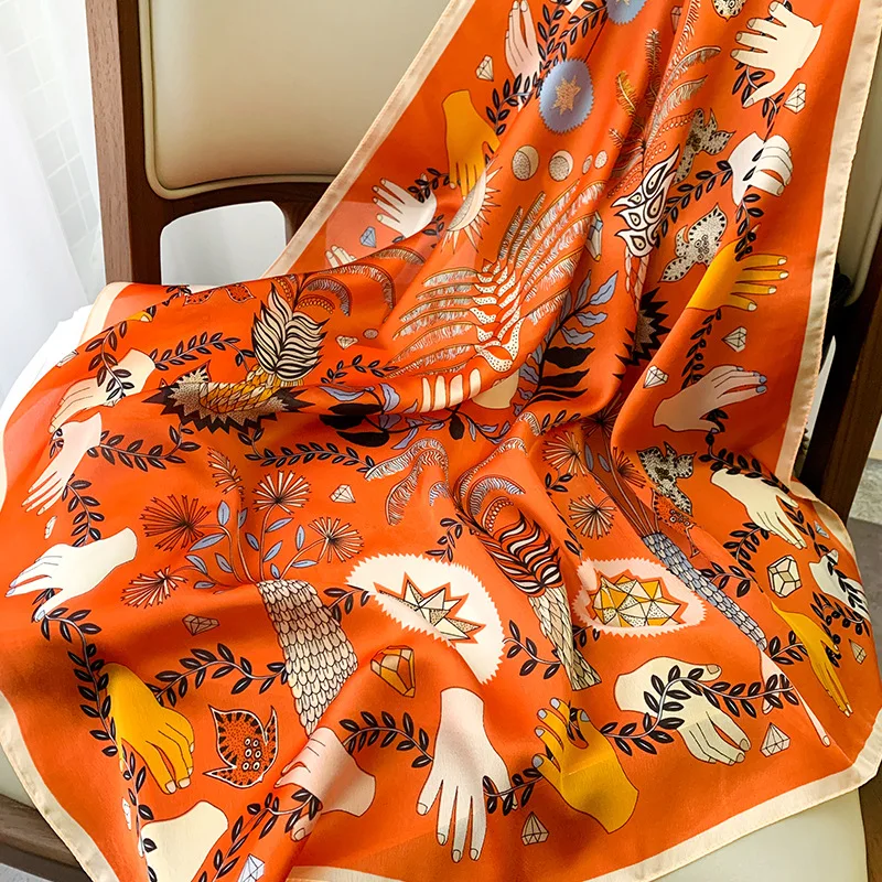 2022 модный головной платок с принтом на весну и осень Новый стиль женский большой квадратный шарф женский пляжный шелковый шарф Роскошная шаль для путешествий
