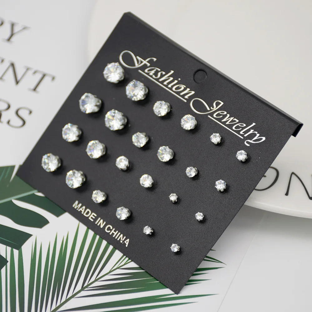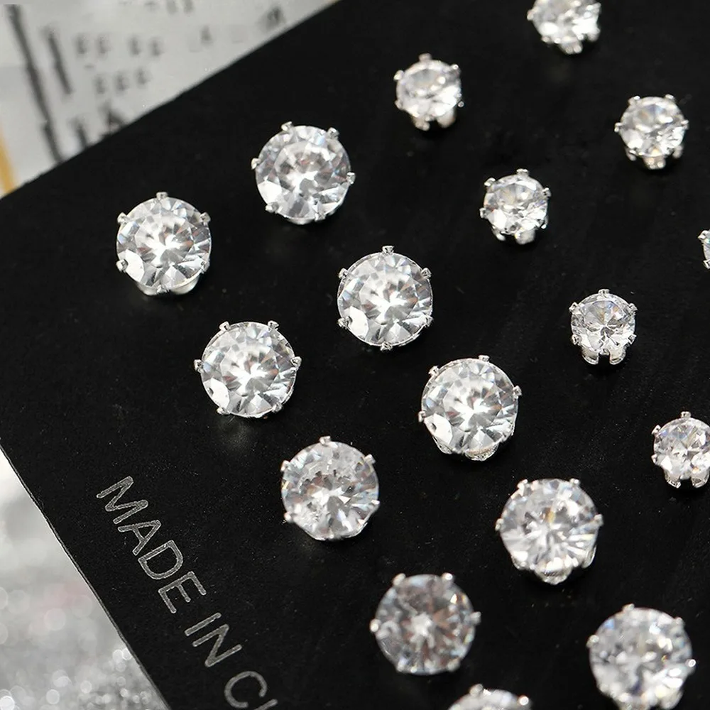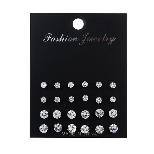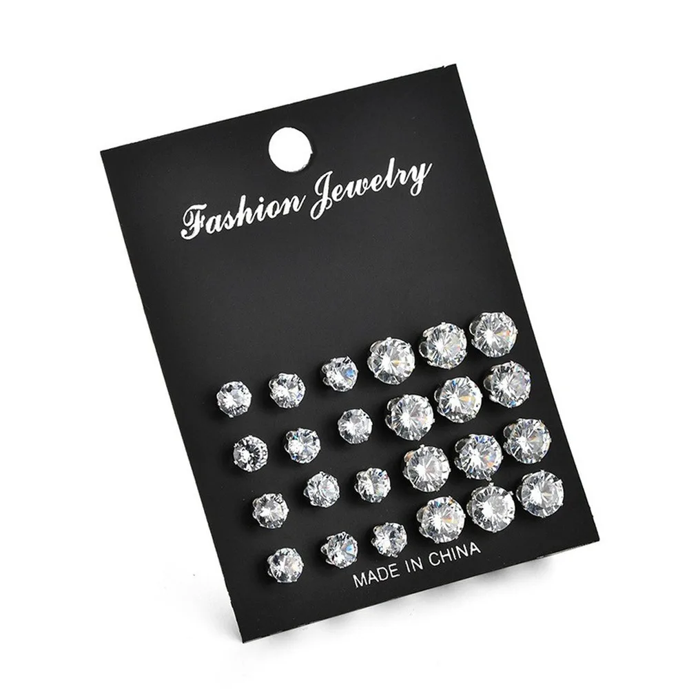 Серьги-гвоздики с кристаллами, 12 пар, элегантные женские серьги Ст...