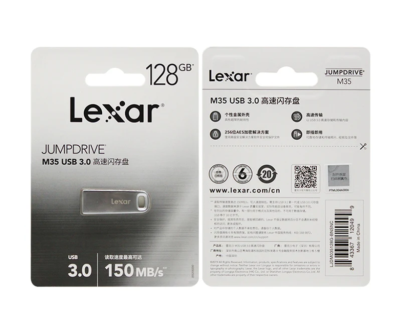 USB-флеш-накопитель Lexar M35 USB 3,0, 128 ГБ, 150 дюйма