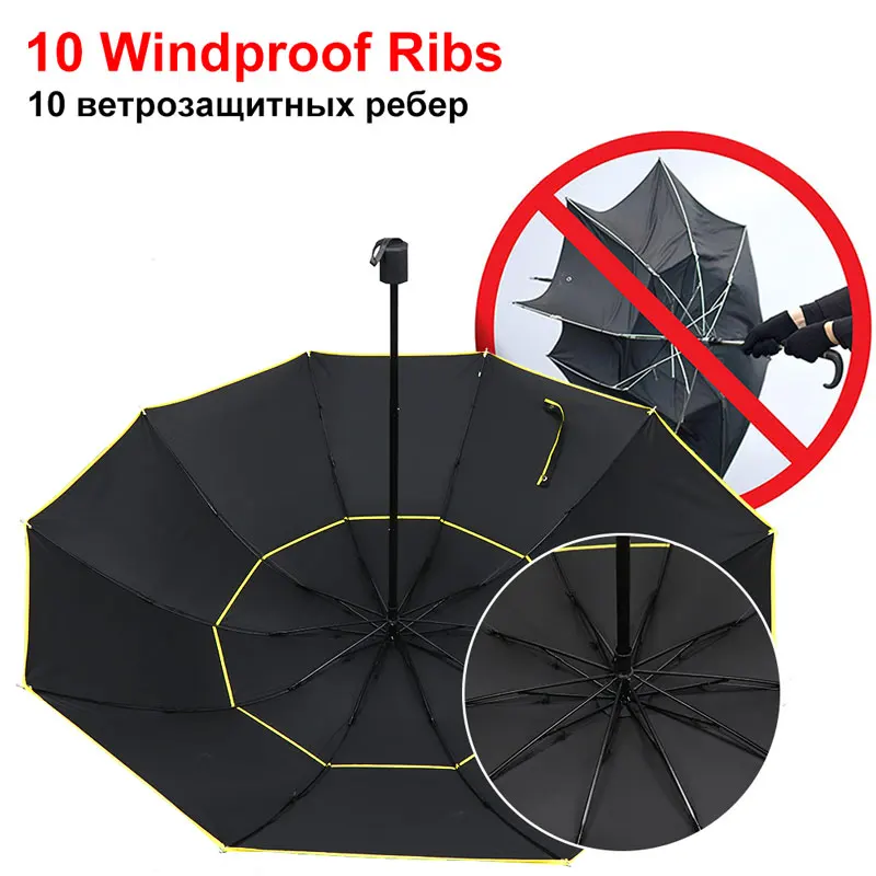 Качественный двойной прочный Ветрозащитный зонт 130 см, большие женские зонты с дождем и 3 сложениями, большие мужские Семейные дорожные зоны для бизнеса