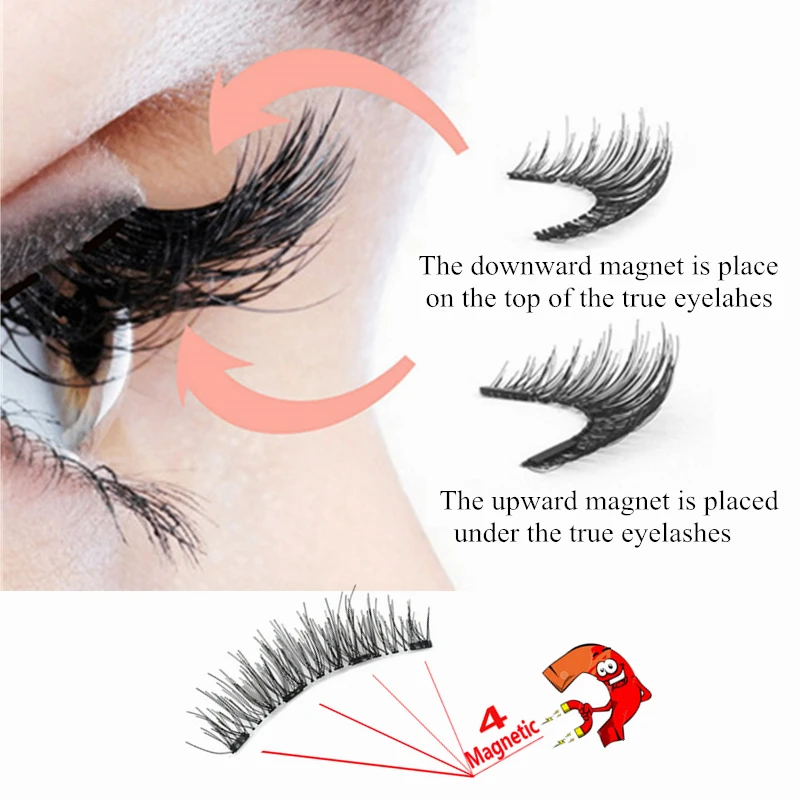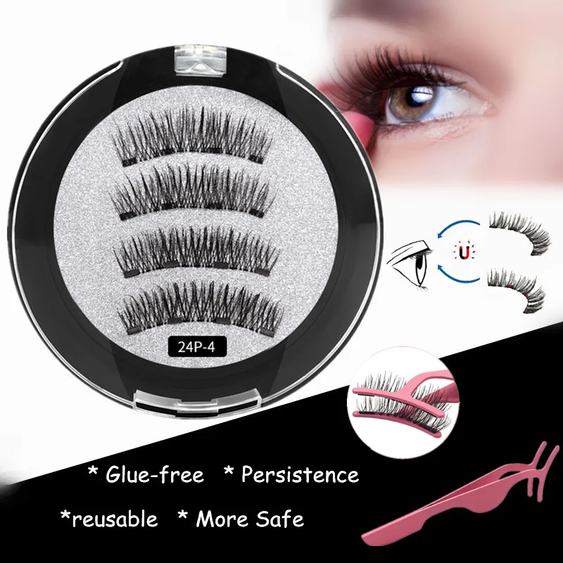 Магнитные ресницы с четырьмя магнитами, безклеевые многоразовые рес...