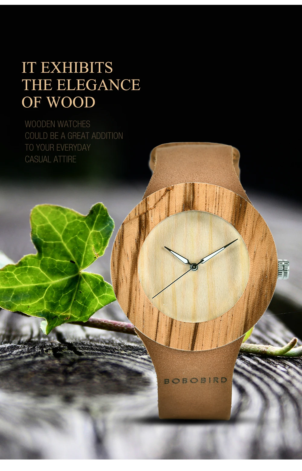 Часы BOBO BIRD женские наручные ручной работы, часы из кленового дерева, простые деревянные, с ремешком из натуральной кожи