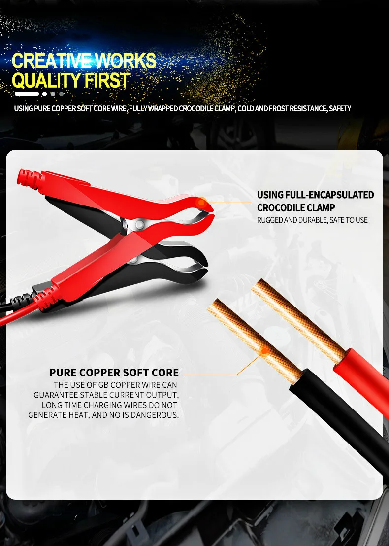 • 3 зарядные устройства подходят для большинства типов аккумуляторов, включая кальций, гель и AGM, мокрый батарей. Они также могут помочь восстановить сливные и сульфированные батареи.