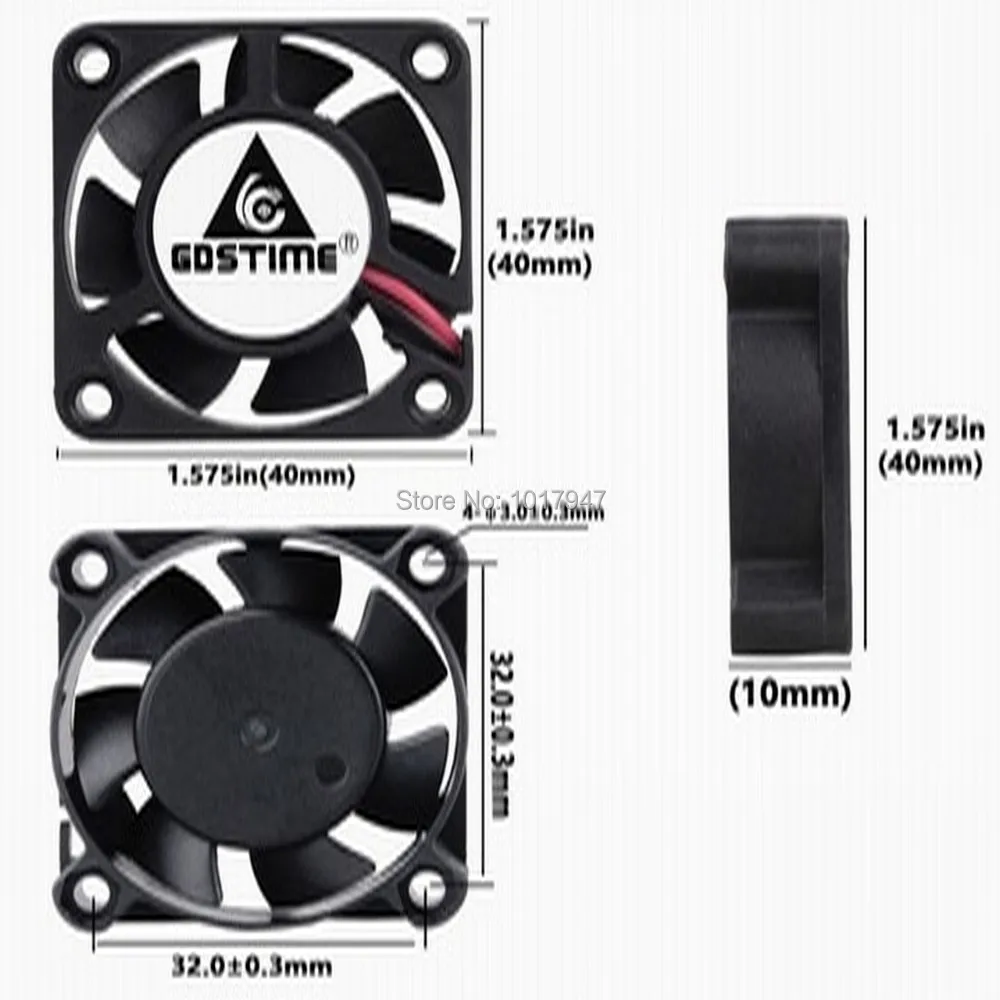 Охлаждающий вентилятор Gdstime, 12 в пост. Тока, 40x40x10 мм, 4 см, 2 контакта, с двумя шарикоподшипниками, чехол с бесколлекторным двигателем, 1 шт.