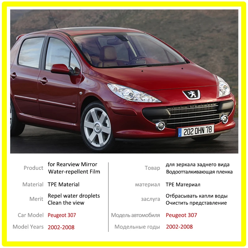 Пленка-дождевик на зеркало заднего вида с полным покрытием прозрачная противотуманная непромокаемая для Peugeot 307 307sw 307cc 2002-2008 наклейки на хэтчбек автомобильные товары