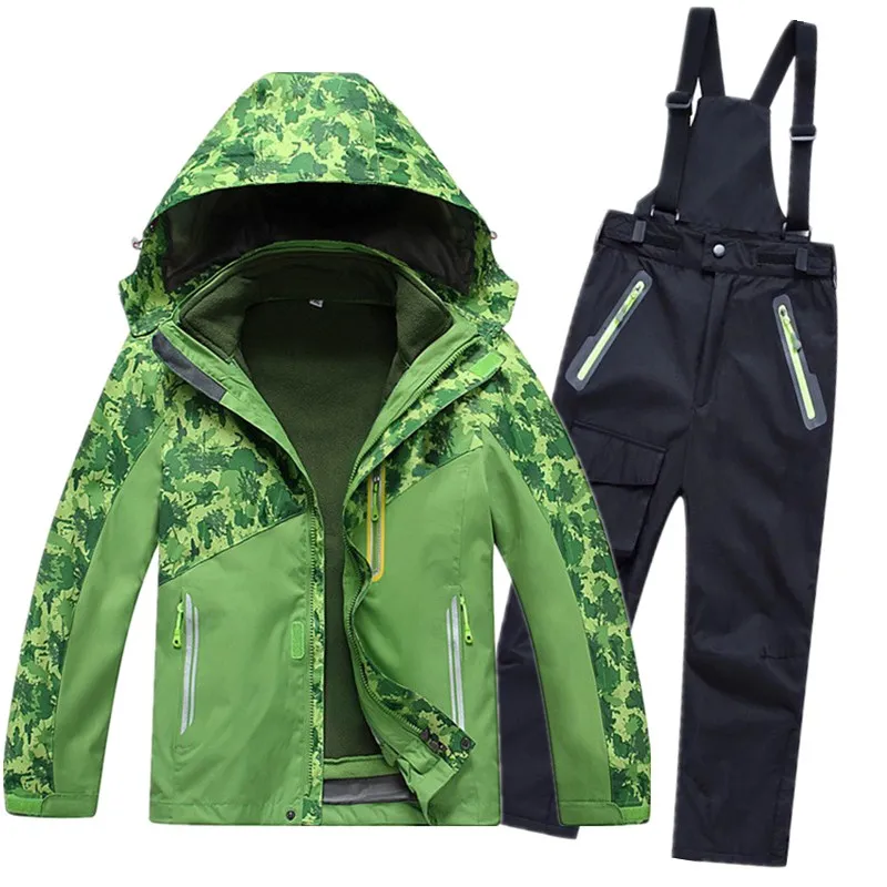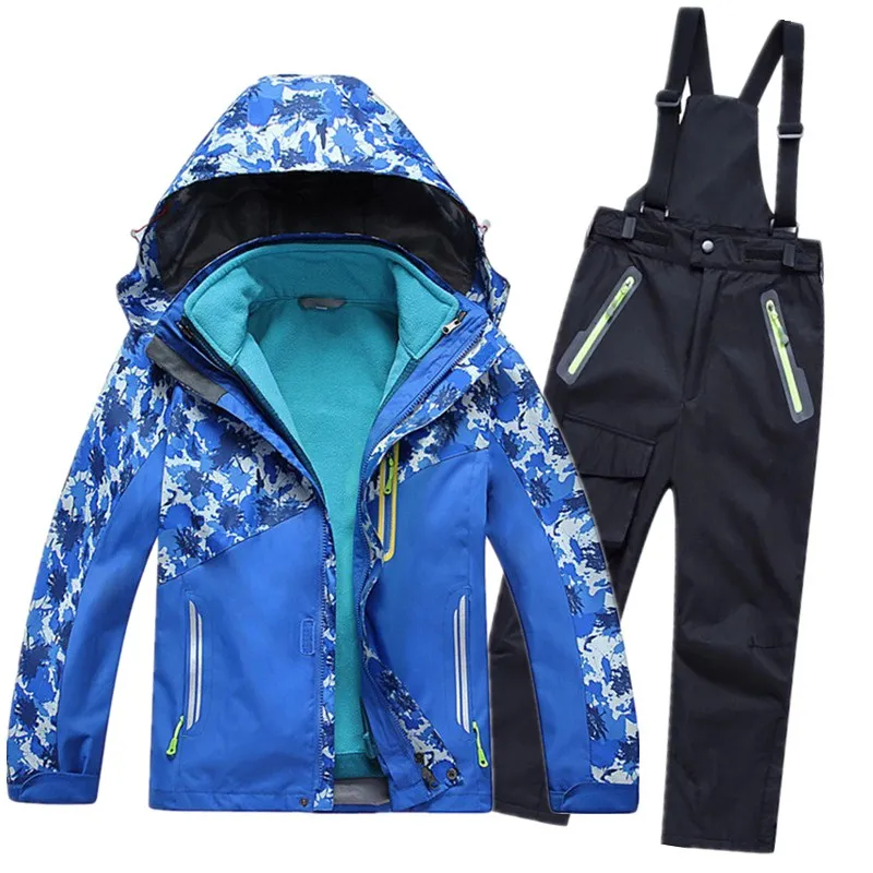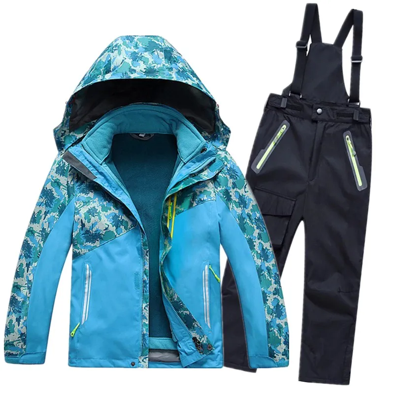 Детские зимние лыжные комплекты, Детские ветронепроницаемые водонепроницаемые лыжные куртки + комбинезоны, брюки, костюм для мальчиков и девочек, лыжная одежда, комплект одежды для катания на коньках