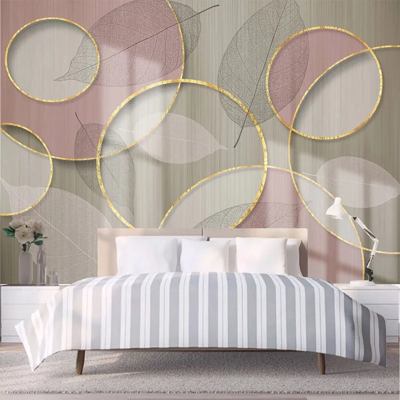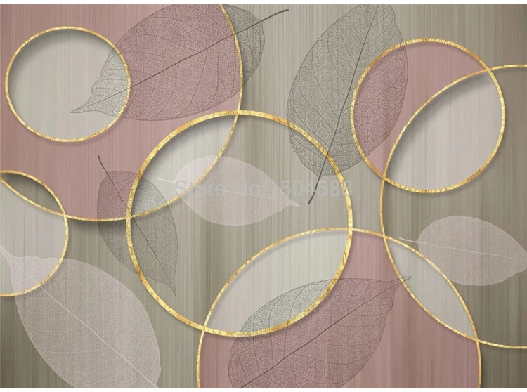 Пользовательские фото обои 3D стерео золотой круг прозрачные листья розовый фон настенный Декор Гостиная Спальня художественные настенные бумаги