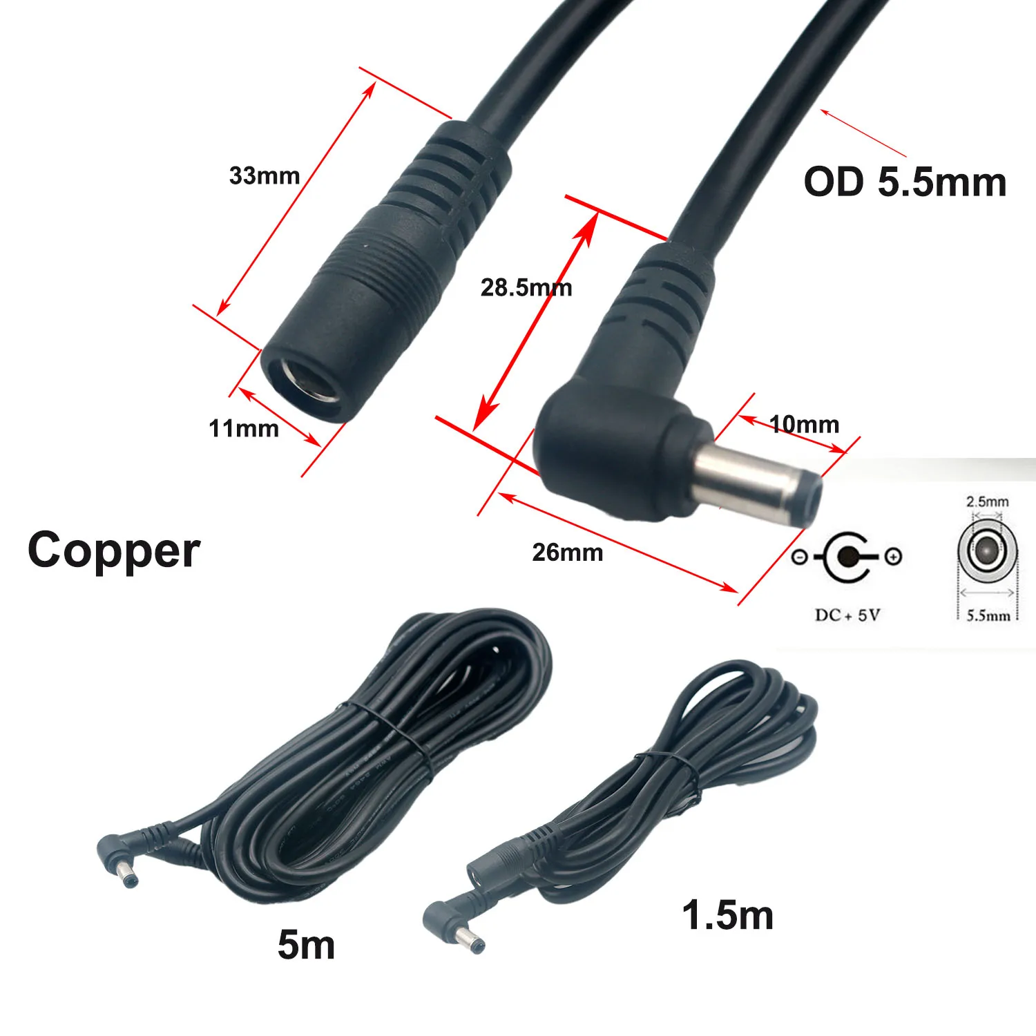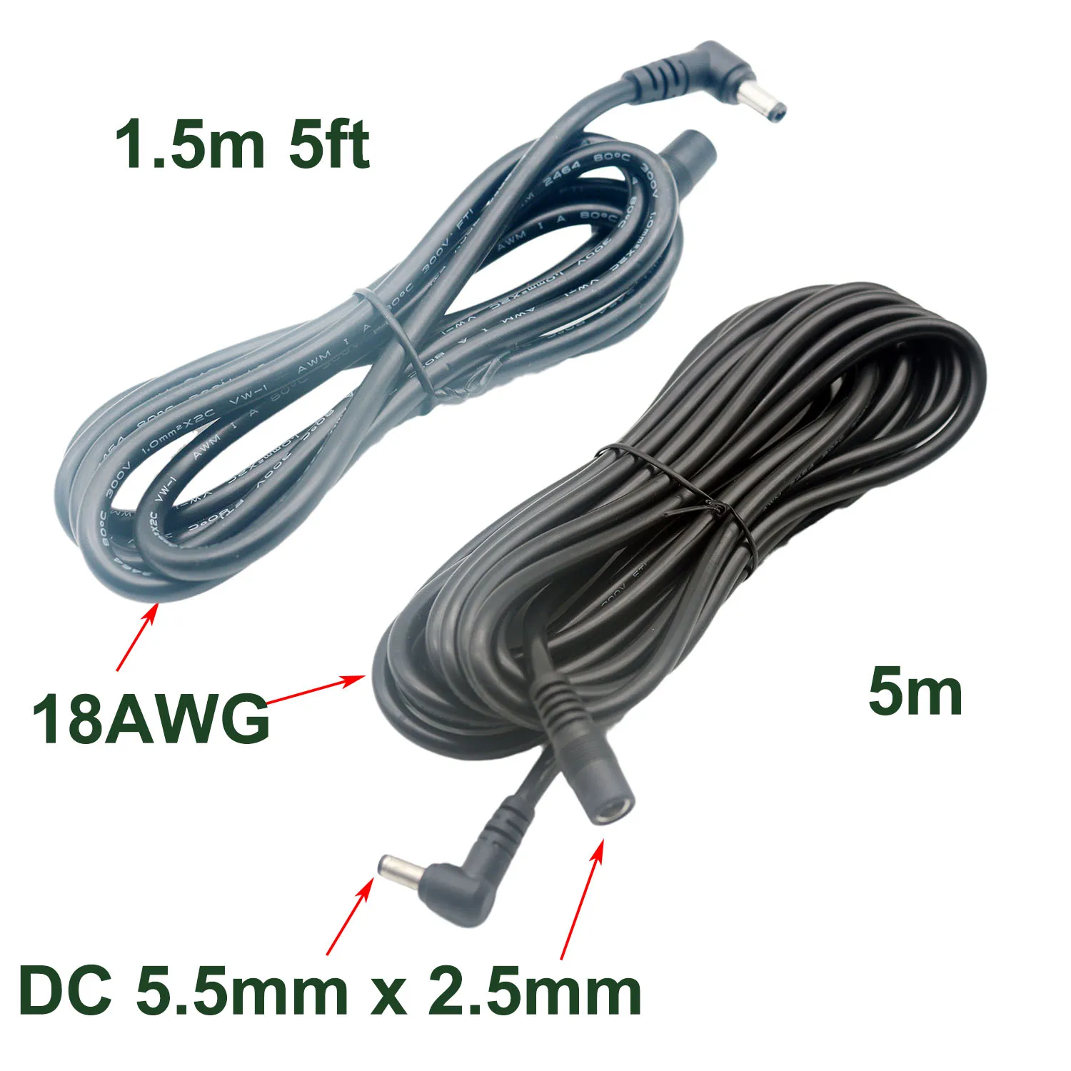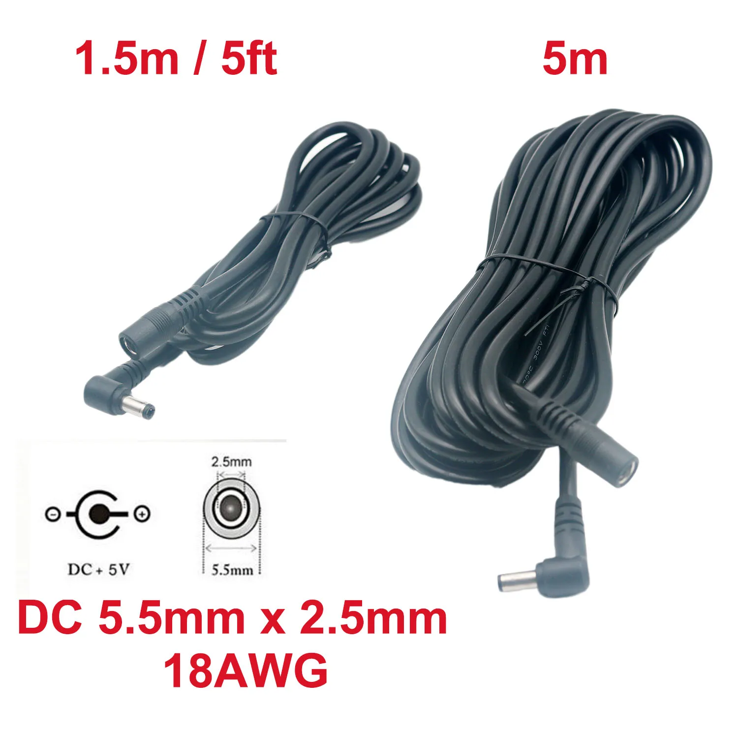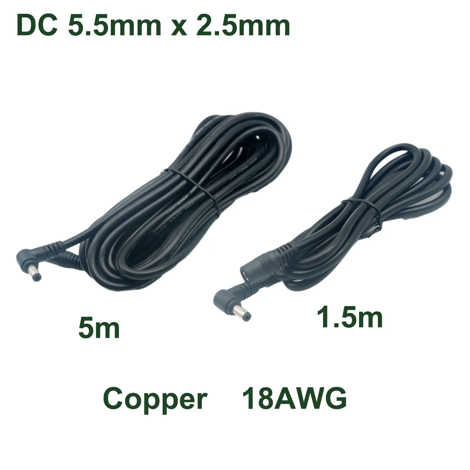 Зарядное устройство постоянного тока 5,5 мм x 2,5 мм, 1 шт., адаптер питания, удлинитель CCTV, 90 , штекер-гнездо, 18AWG, 1,5 м5 футов, 5 м