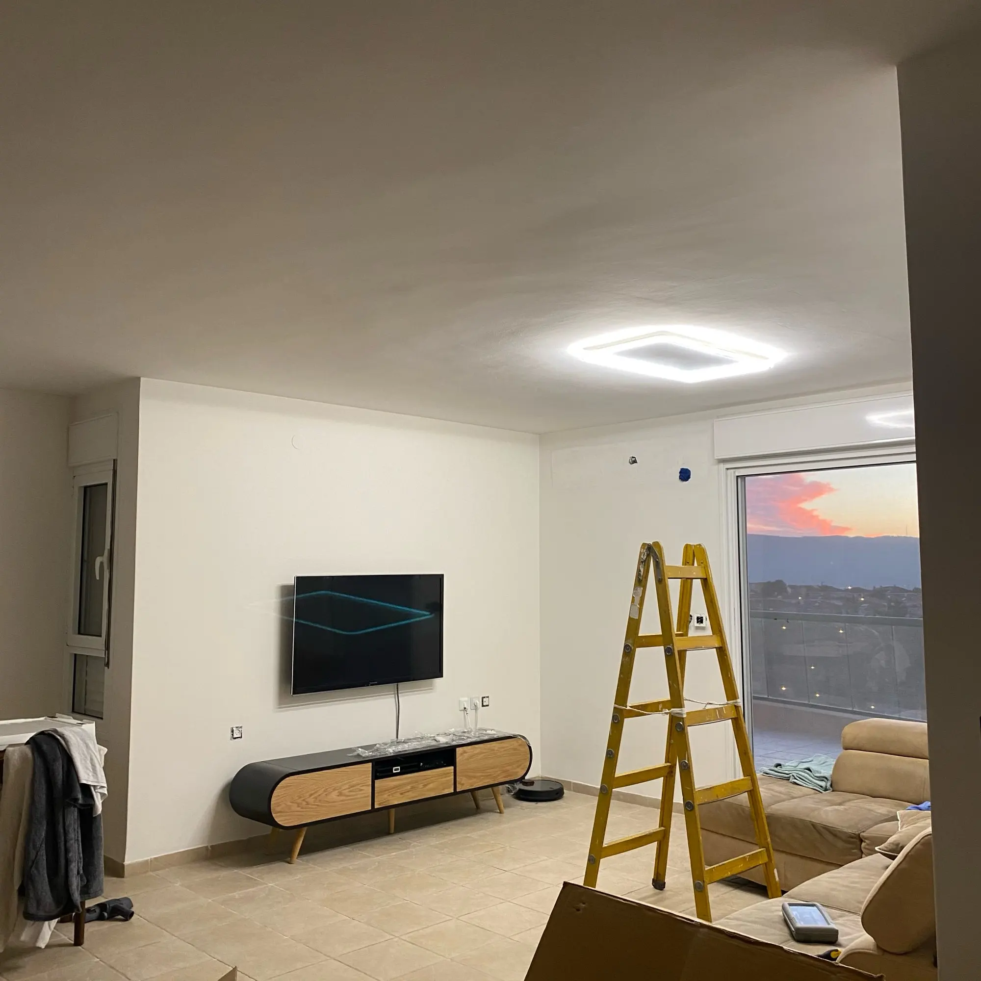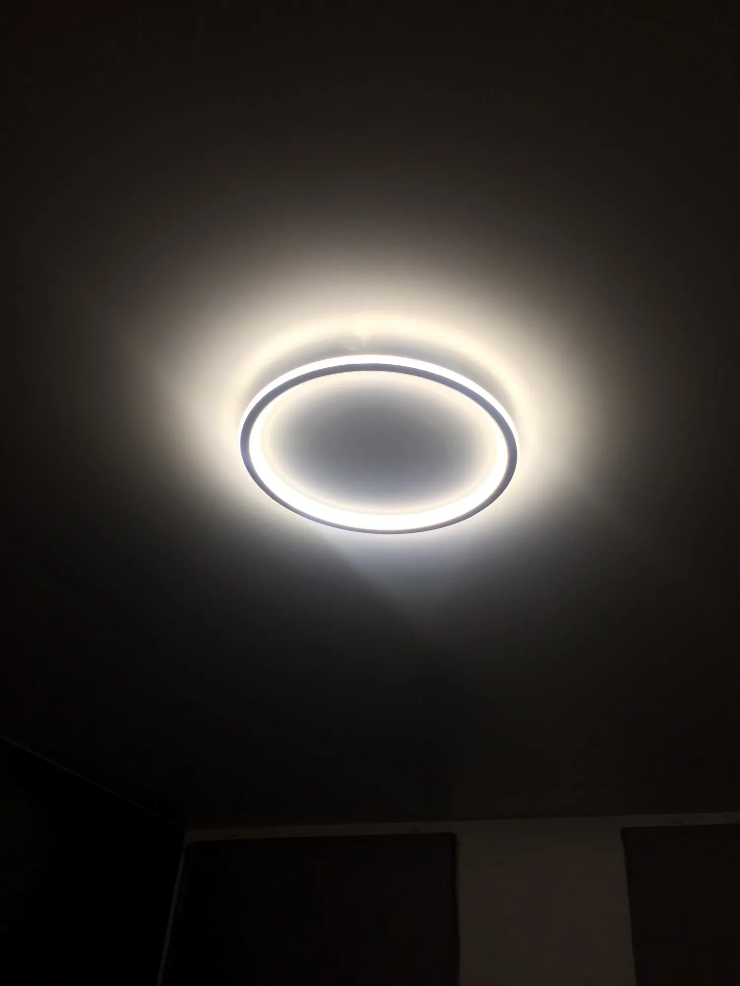 Пожалел, что выбрал холодный белый. Уж слишком он холодный, не голубой конечно, но не привычно. По яркости все хорошо, брал для 12 кВ м. Выглядит стильно, необычно. Рассеивание света хорошее. Нет разделения на половинки, то есть если хотите повесить на выключатель из двух клавиш, то придётся докупить трансформатор и вооружится паяльником. В таком случае можно сделать чтобы внутренний и наружные круги включались по отдельности. Доставка долгая, не знаю, может вам повезёт.