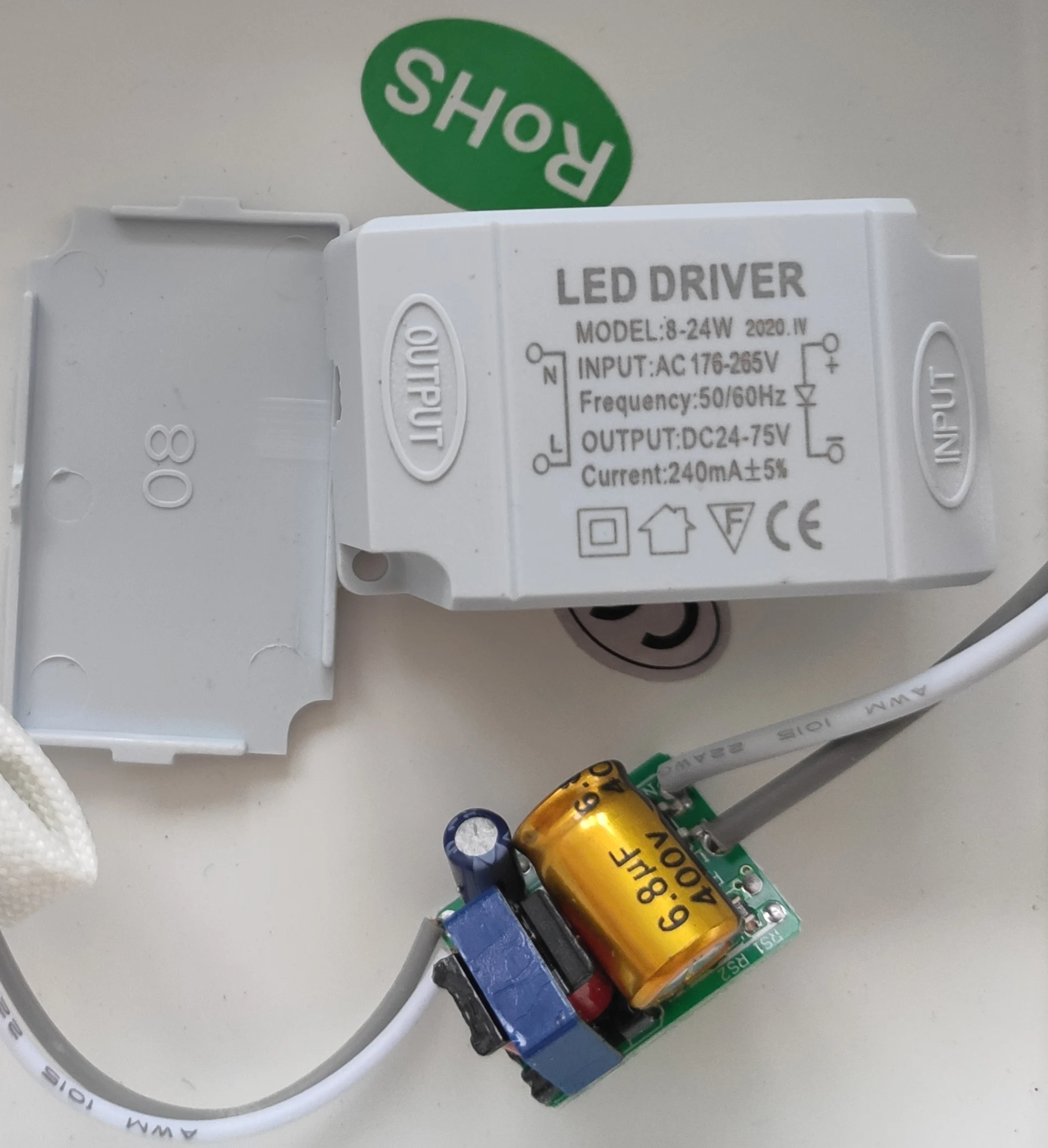 Внутренний блок питания очень маленького размера. Заявленная мощность лампы 25 Вт, а мощность драйвера 8-24 Вт. Либо в лампе использованы ленты меньшей мощности, либо блок сгорит быстро. В любом случае имеет место ошибки в описании. Внешняя и внутренняя ленты имеют грубые стыки.