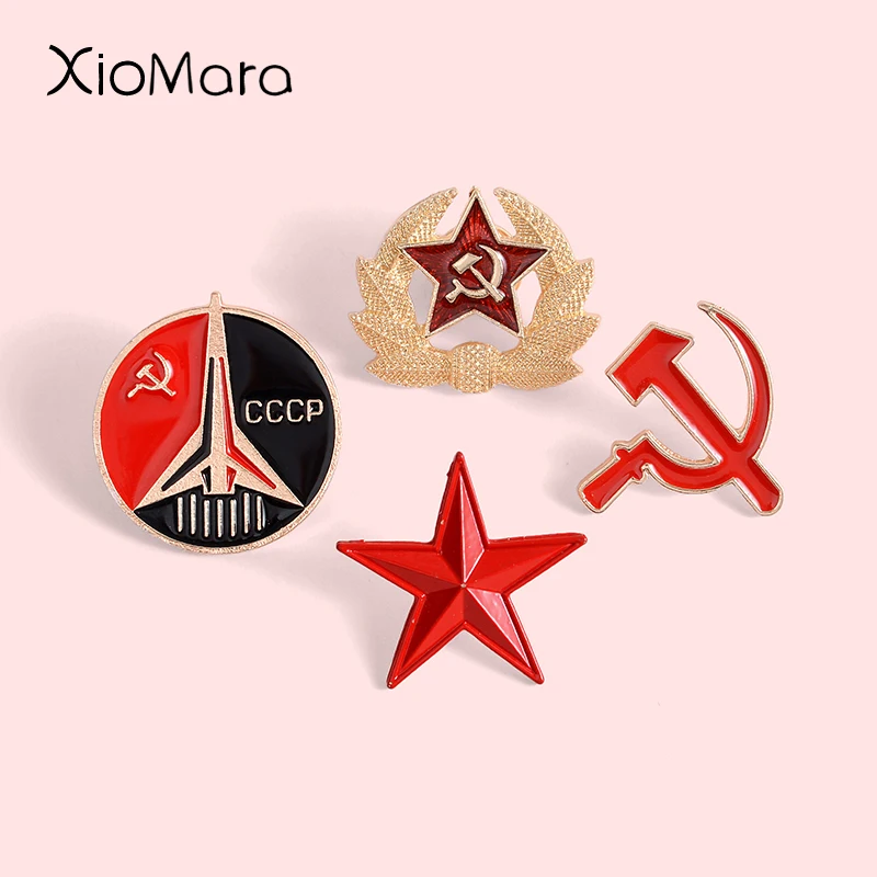 Эмалированный значок с символом СССР, красная звезда, серп, молот, холодная война, советская брошь СССР, Подарочная брошь, значок на лацкан для пальто, шапки