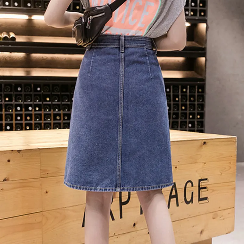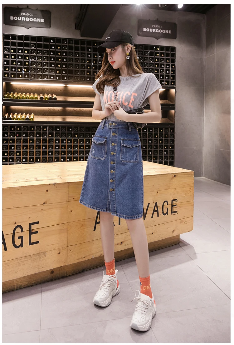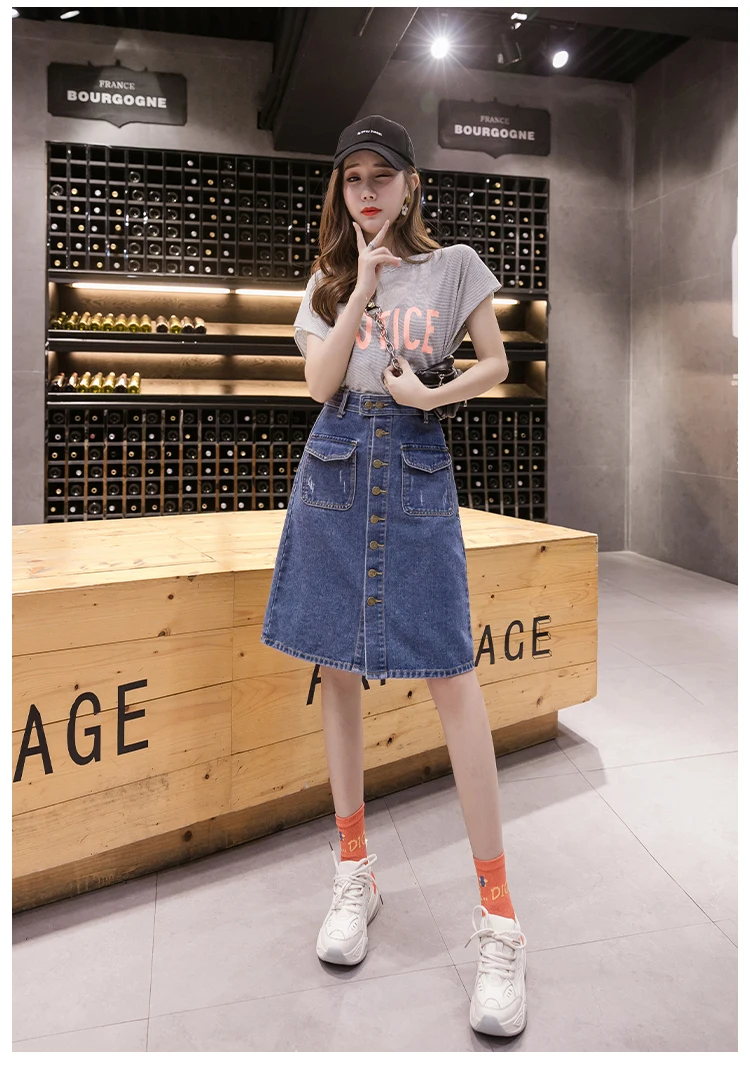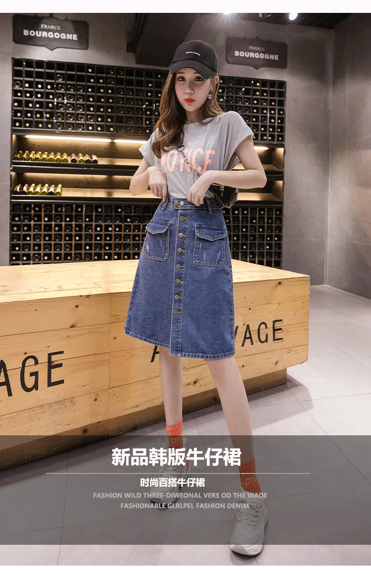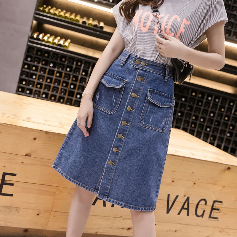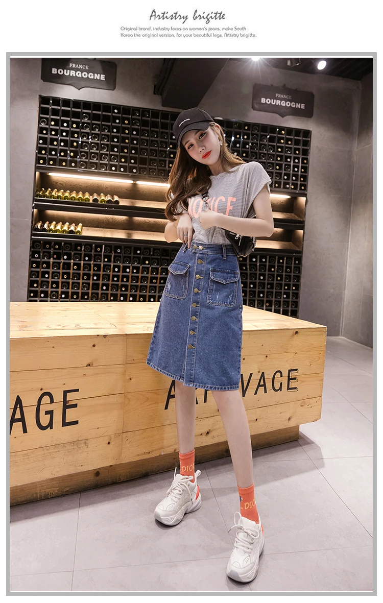 Женская джинсовая юбка на пуговицах, Корейская летняя юбка с завышенной талией, Женская юбка