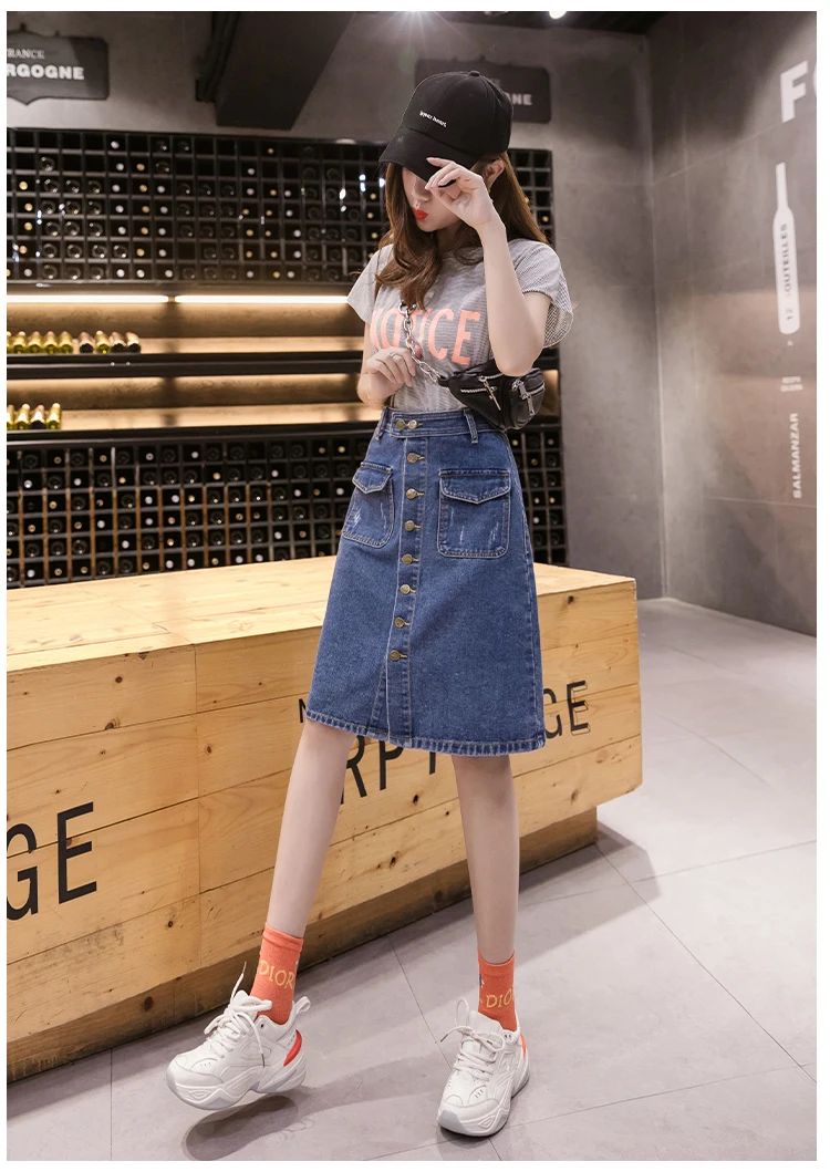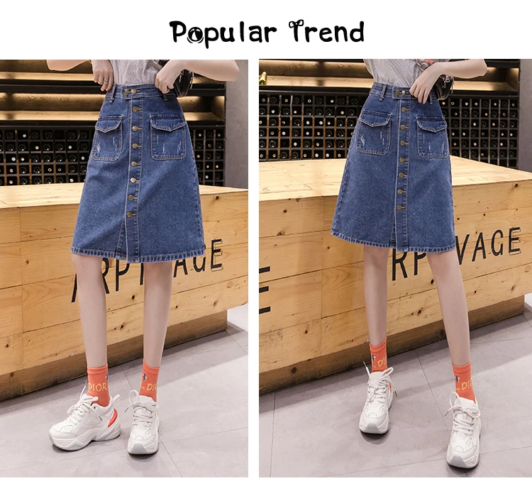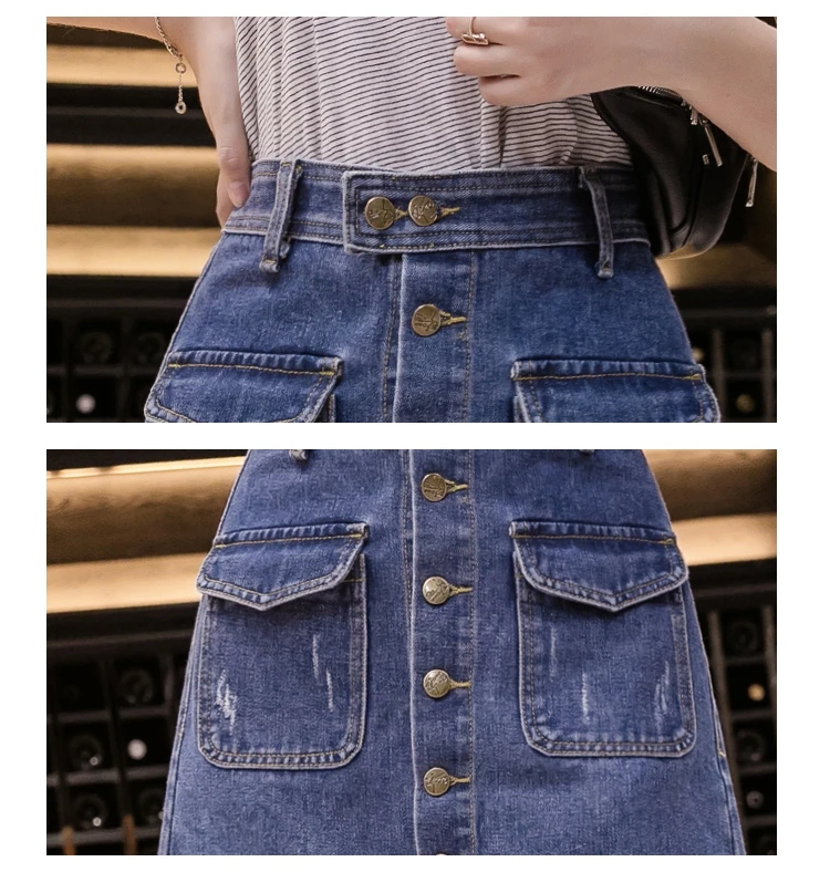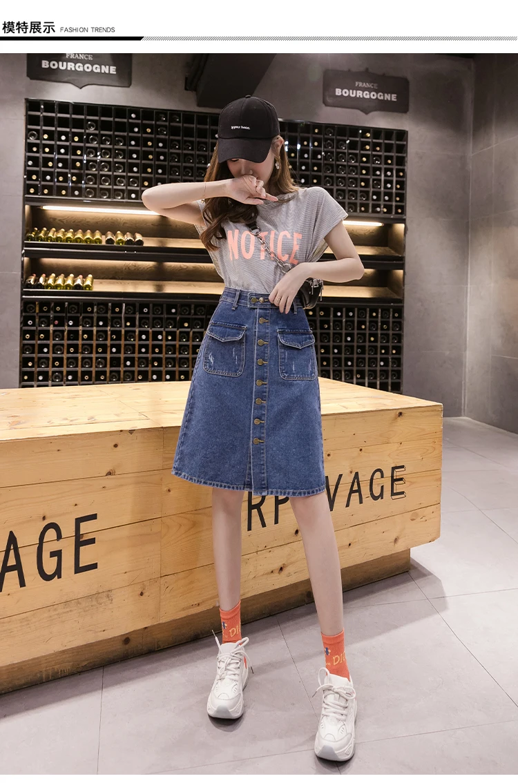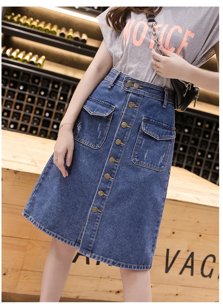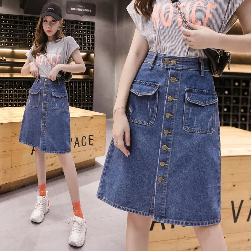 Женская джинсовая юбка на пуговицах, Корейская летняя юбка с завышенной талией, Женская юбка