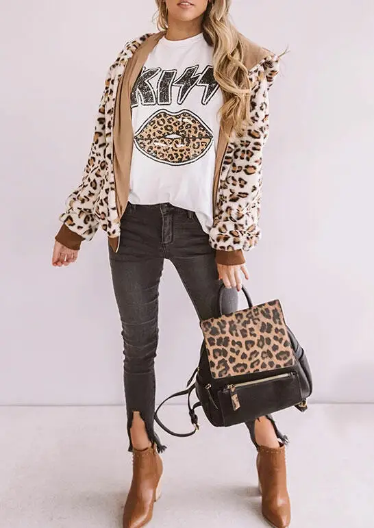 Футболка женская с леопардовым принтом, 100% хлопок, унисекс