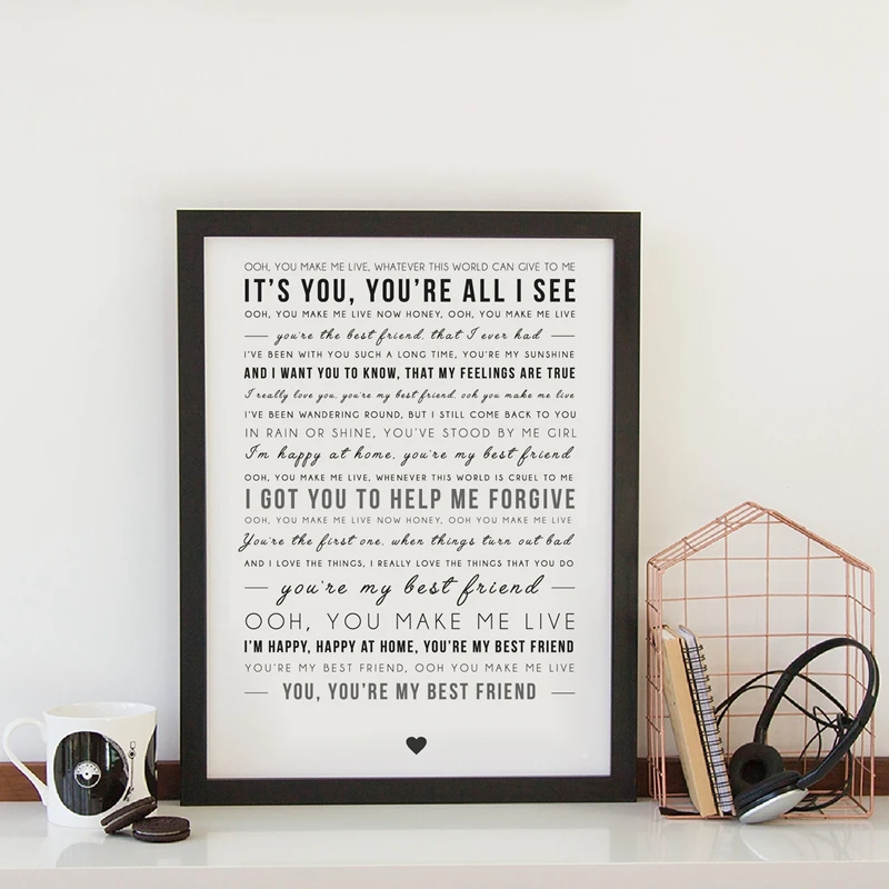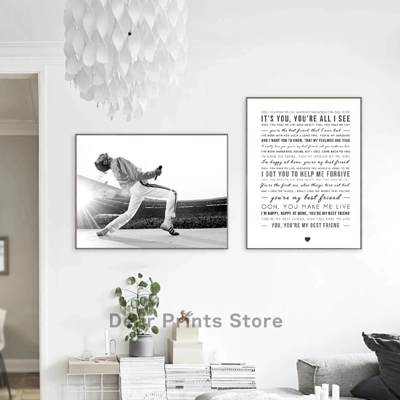 Freddie Mercury Song Lyric Print You Are My Best Friend Queen, постер с цитатами, идея свадебного подарка, настенное искусство, холст, живопись, Декор