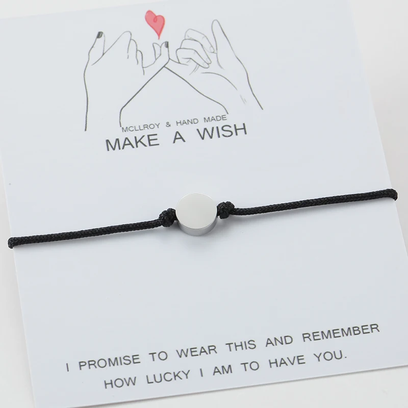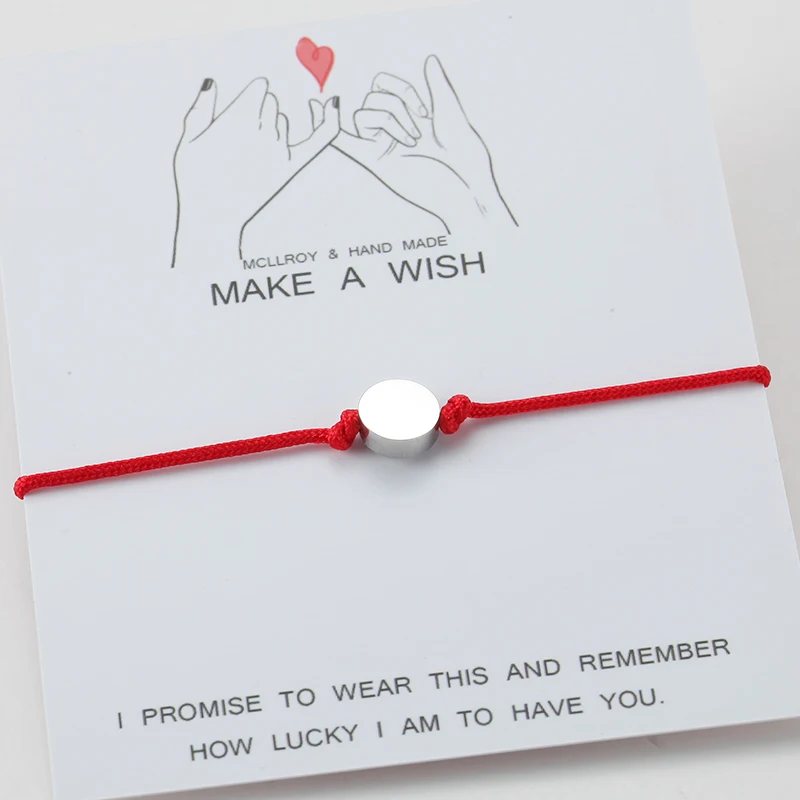 Красный браслет на заказ Женский персонализированный браслет гравировка прямоугольник на заказ буквы нержавеющая сталь Красный Черный Браслет-веревочка для женщин