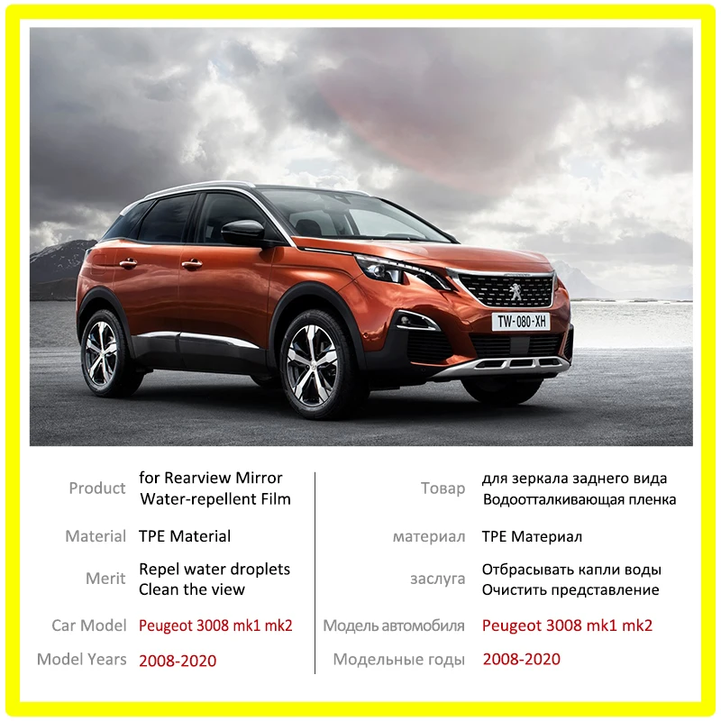 Для Peugeot 3008 mk1 mk2 2008- 2020 3008GT 2019 пленка на зеркало заднего вида HD противотуманная непромокаемая Авто Зеркальная Наклейка Автомобильные аксессуары