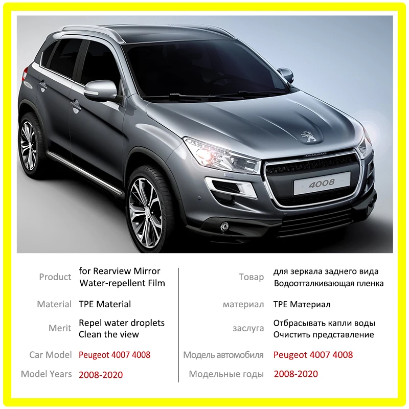 Противотуманная наклейка на автомобильное зеркало для Peugeot 4007, 4008, 2007, 2017-2014, 2016, пленка на зеркало заднего вида, HD