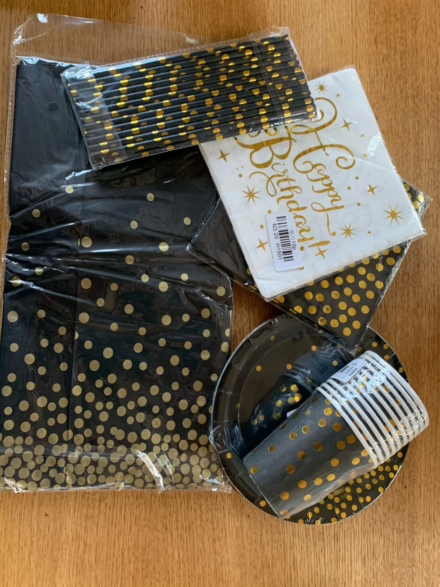 Заказ прибыл очень быстро! Хорошо упакованы. Товары соответствуют описанию в магазине продавца. Хорошее качество продукции. Я рекомендую покупку у продавца! Восхитительная скатерть! Для дня рождения в черном и золотом цвете это действительно здорово!