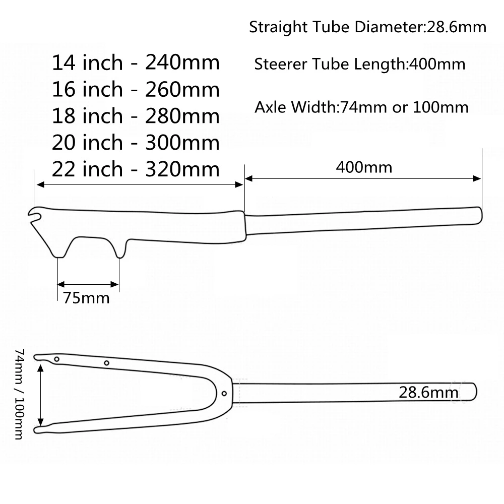 Глянцеваяматовая 3K Углеродное волокно складывающийся BMX Велосипедная вилка Передняя вилка для велосипеда 14 16 18 20 22 "дюймовая трубка Steerer 1-18 дюйма дисковый тормоз