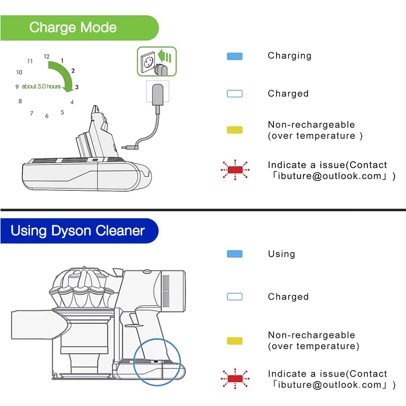 Заменить на оригинальные батареи:965874-02 204720-01 209432-01 209472-01209476-01 209560-01 210691-01 210692-01Совместимые модели:Для серии dyson V6 DC58 DC59 DC61 DC74 DC74 DC62 animal SV03 SV05 SV06 SV07 SV09