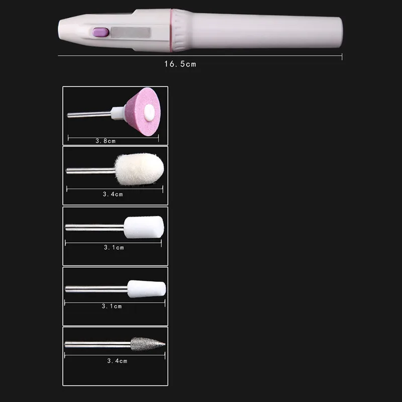 Портативная миниатюрная электрическая дрель для ногтей, шлифовальная машинка с аккумулятором, буферная пилка для ногтей, набор для дизайна ногтей Pro 5 наконечников, инструменты для творчества и ногтей
