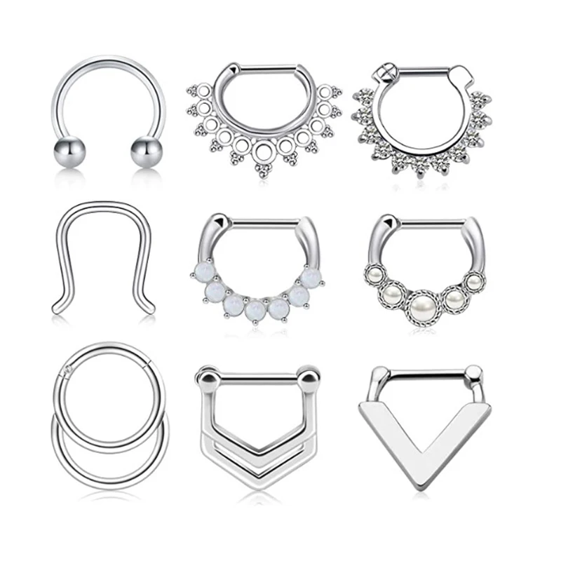 9 шт., кольца для пирсинга носа, из нержавеющей стали, 16 г