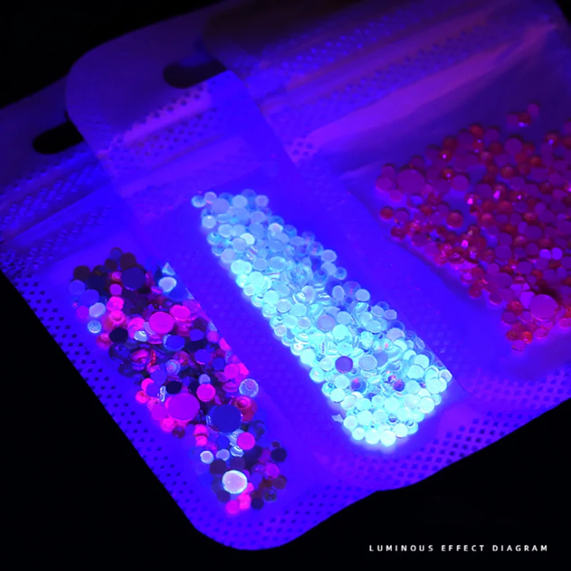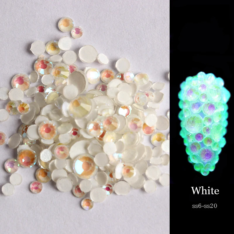 1 упаковка, светящиеся Стразы для ногтевого дизайна, SS6-SS20 разных цветов, 3D украшения для ногтевого дизайна, светится в темноте украшений