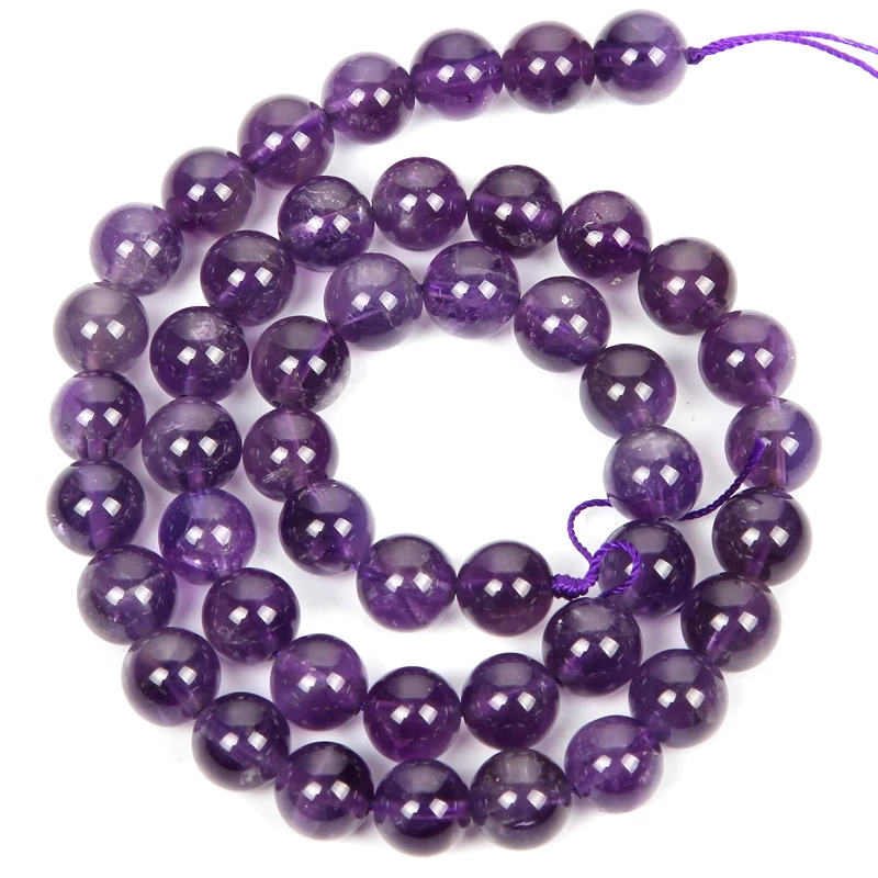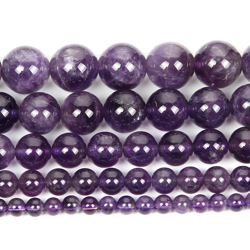 Бусины из натурального камня, аметисты, кристалл агата, круглые бусины россыпью, аксессуары для браслетов, бусины 4-12 мм