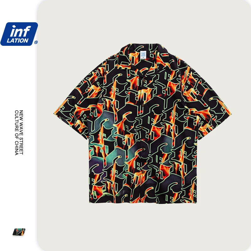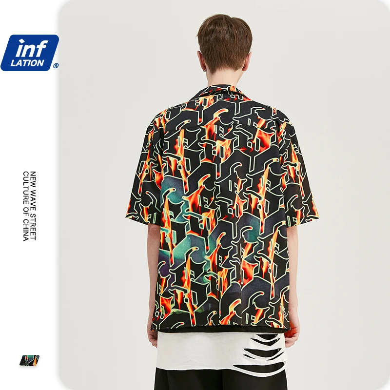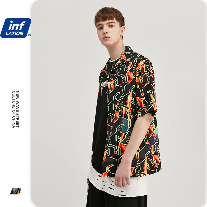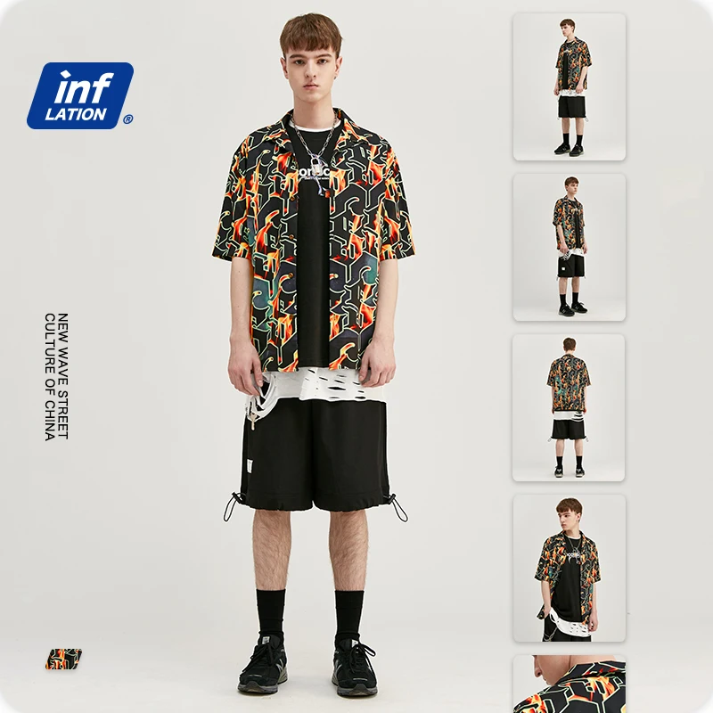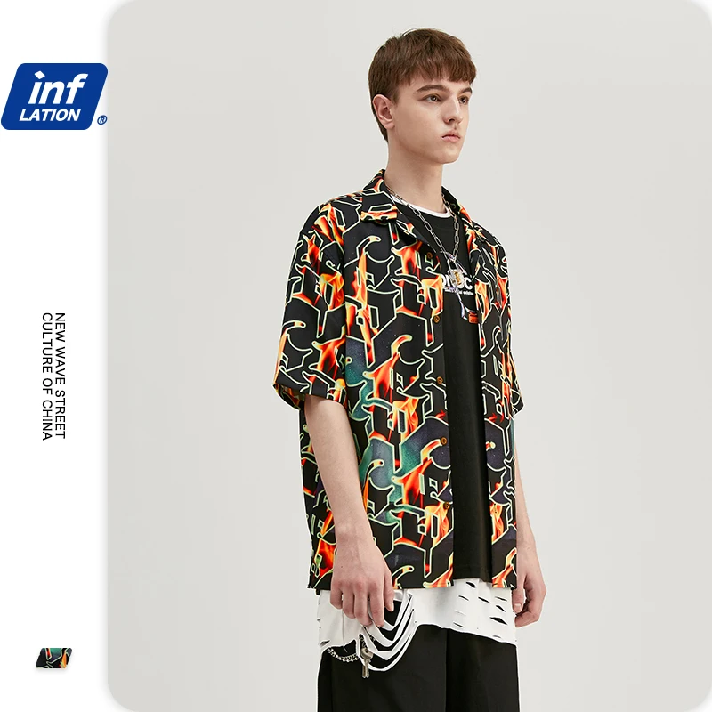 Гавайская рубашка в стиле инфляции Мужская, оверсайз с цифровым принтом, уличная одежда, модная сорочка с коротким рукавом, 2020S20