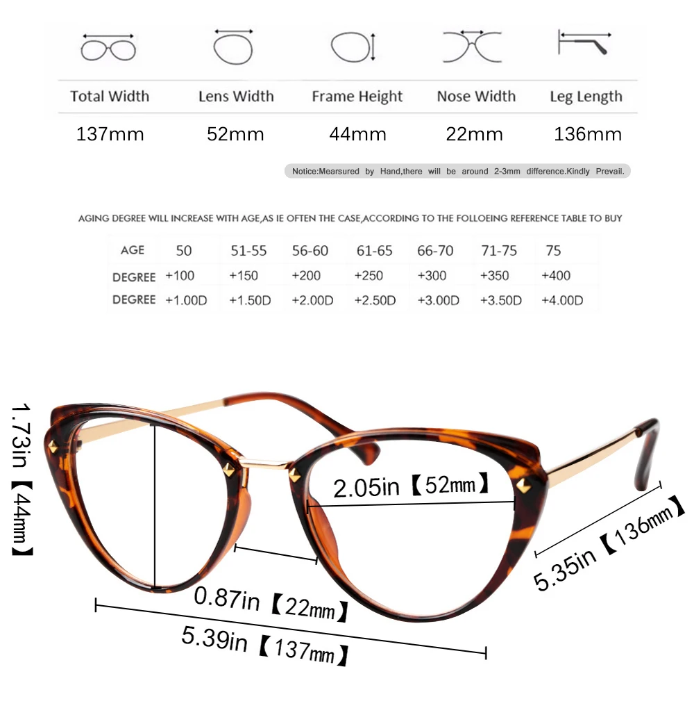 Очки для чтения кошачий глаз с диоптриями + 0,5 0,75 1,0 1,25 до 5,0