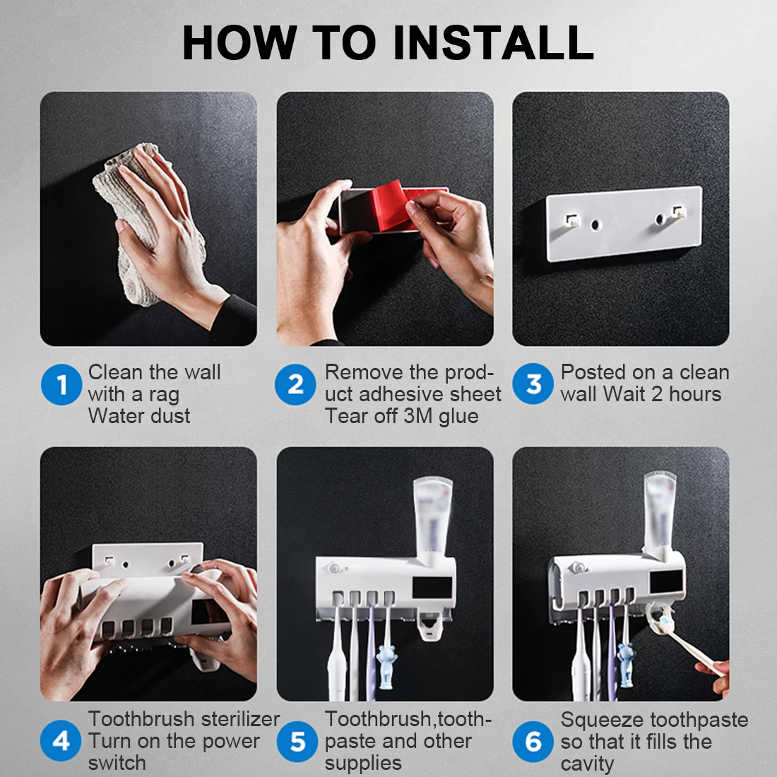 Антибактериальный держатель для зубных щеток на солнечной батарее, автоматический стерилизатор, Диспенсер зубной пасты, выдавливатель, аксессуары для ванной комнаты