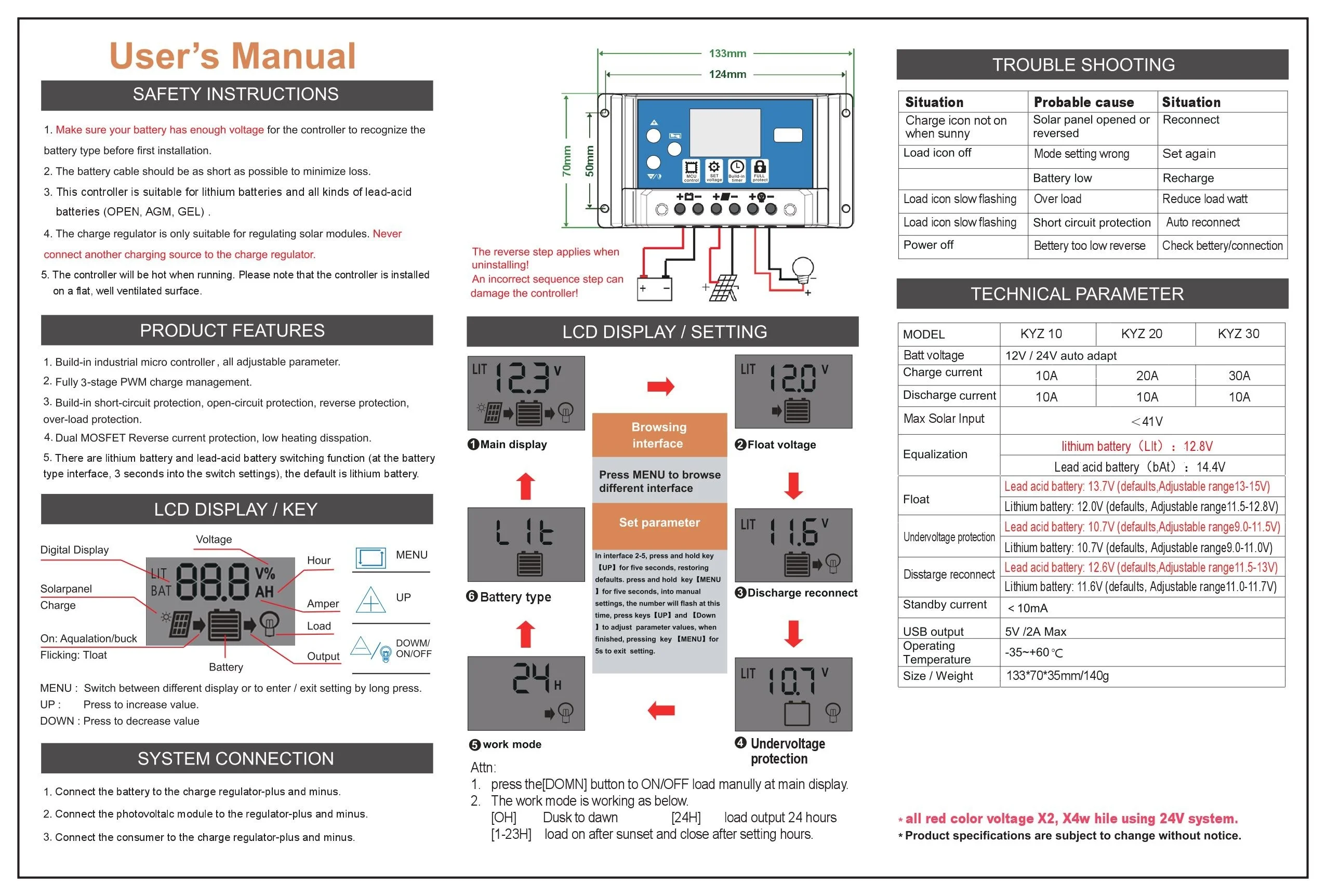 A. Этот продукт не должен соприкасаться с сильно коррозионными веществами; B. Строго запрещено модифицировать, разбирать или собирать, сбрасывать, стучать или сильно ударять распределительную коробку и изделие самостоятельно, Избегайте попадания на нее, И не царапайте поверхность твердыми предметами во время использования. Угол между положением гибкого компонента и положением перед изгибом не может быть больше 25 °; C. Большое количество царапин или грязи на поверхности солнечной панели может привести к тому, что модуль солнечной батареи будет неэффективным и серьезно вызовет выгорание; D. Подходящий диапазон температуры окружающей среды этого продукта: -20 ° C-80 ° C, пожалуйста, не превышайте этот диапазон; Е. Солнечная панель должна быть установлена в области с хорошим солнечным светом и без теней. Может быть риск выгорания, если модуль солнечной батареи работает на солнечном свете в течение длительного времени; F. Запрещено соединять положительные и отрицательные полюсы продукта вместе, и запрещено помещать продукт в воду или огонь, в противном случае это повредит продукт. G. Общая мощность фотоэлектрического модуля должна быть меньше номинальной мощности контроллера (номинальное напряжение × номинальный ток). Строго запрещено перегружать контроллер. H. Напряжение PV модулей, подключенных в серии к контроллеру параллельно, должно быть в пределах диапазона входного напряжения фотоэлектрической контроллера. I. Инвертор может быть подключен только к батарее, а не непосредственно к контроллеру и солнечной панели.