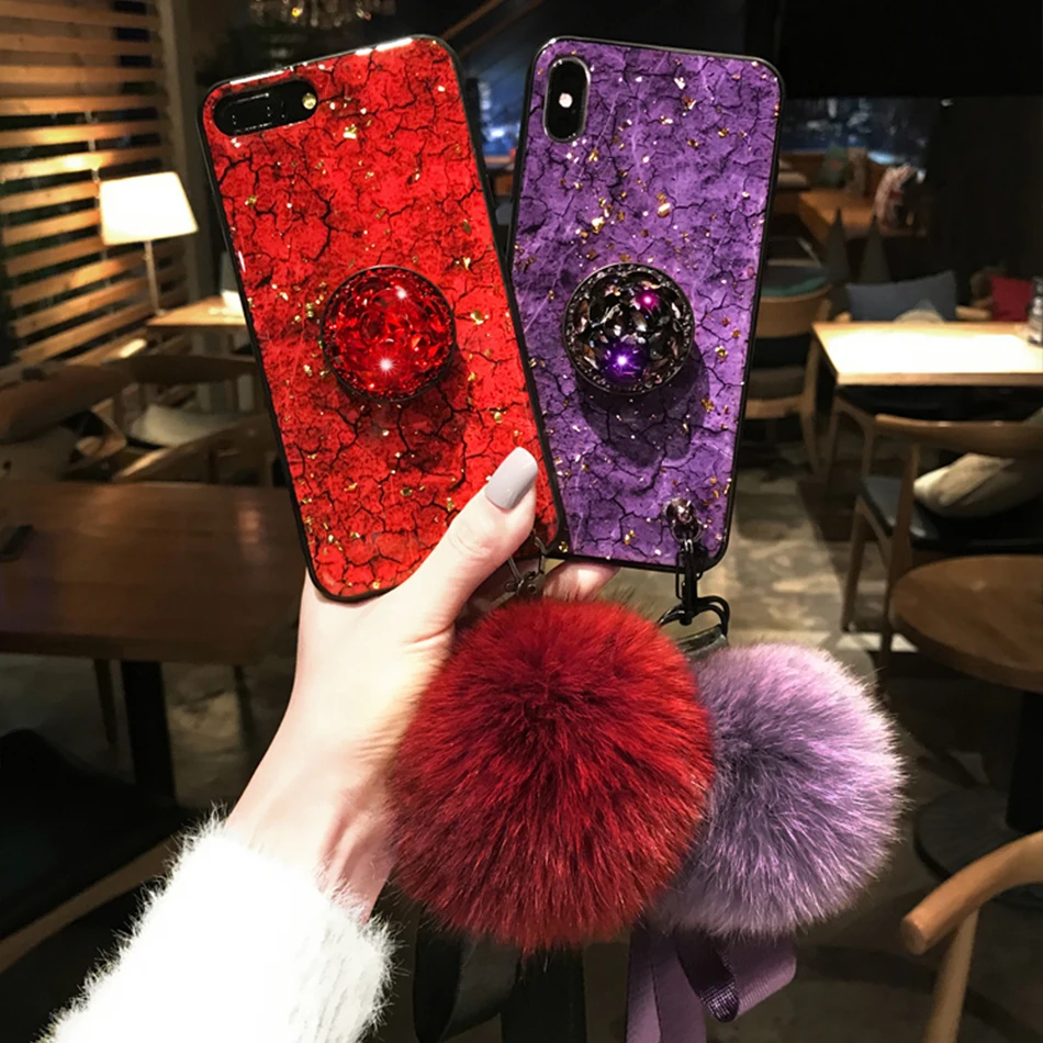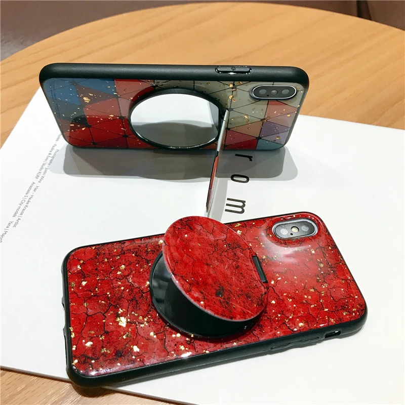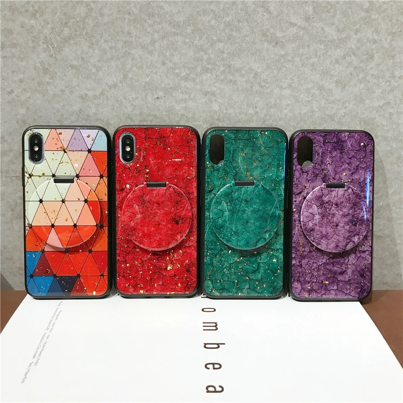 DesignLuxury Diamond Glitter Marble Soft Silicone Gold Foil With Finger Ring