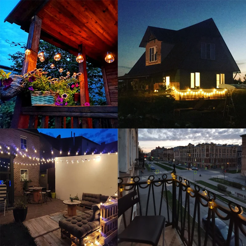 Оснащенный 20 глобальных светильник ламп на 5 м, эта строка светильник издает ярко-желтое свечение на задних дворов, беседок, садов, пергол, палуб, городских крыш, держащих букет невесты на свадьбе, званых обедов, вечеринок по случаю Дня рождения, посиделки мгновенно приподнимают светильник в романтическом, но праздничном стиле.Супер обновленный энергоэффективный яркий светильник с водонепроницаемым освещением делает его идеальным для использования на открытом воздухе или в помещении.