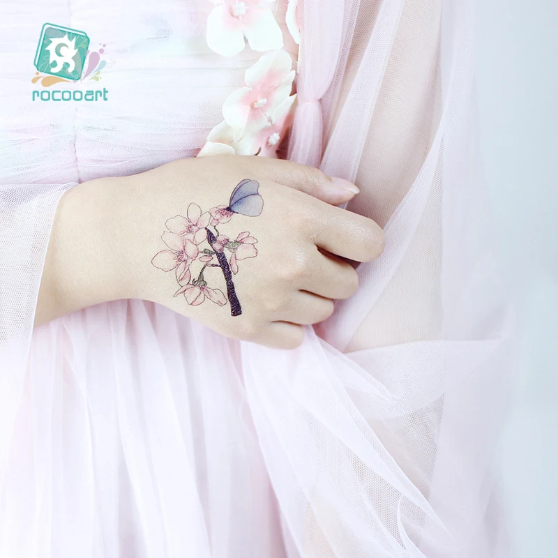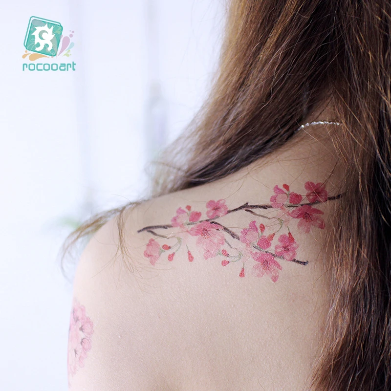 Временная водостойкая Татуировка Rocooart, вишневый цвет, милый розовый цветок, татуировка для женщин и девочек на ключицы, на руку, боди-арт, дизайн