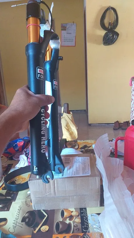 Это не sountour epixon! Я не знаю, почему они ставят эту отметку, если это так. Бренд, который прибыл, является велосипедным героем. Так же, как на фото. The suspension looks good. Я собираюсь попробовать это.